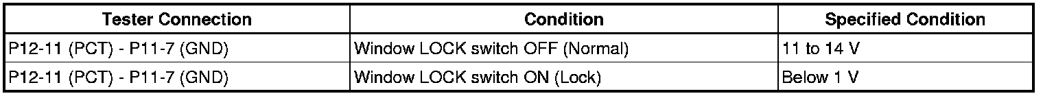4. CHECK POWER WINDOW REGULATOR SWITCH ASSEMBLY (WINDOW LOCK SWITCH SIGNAL)