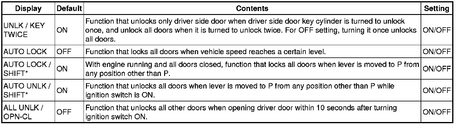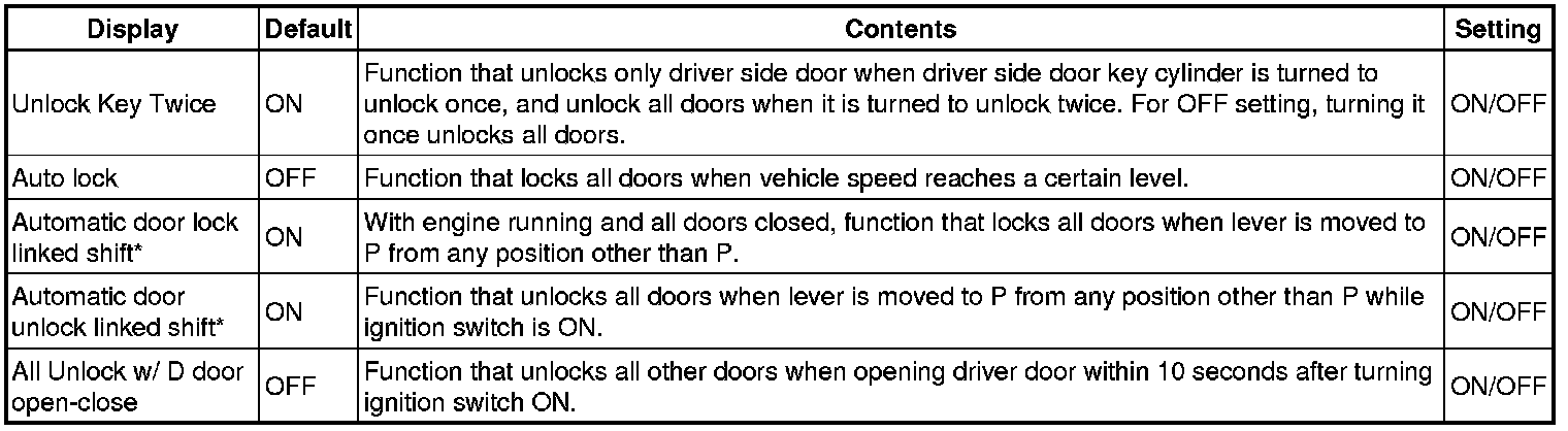 DOOR LOCK: POWER DOOR LOCK CONTROL SYSTEM: CUSTOMIZE PARAMETERS