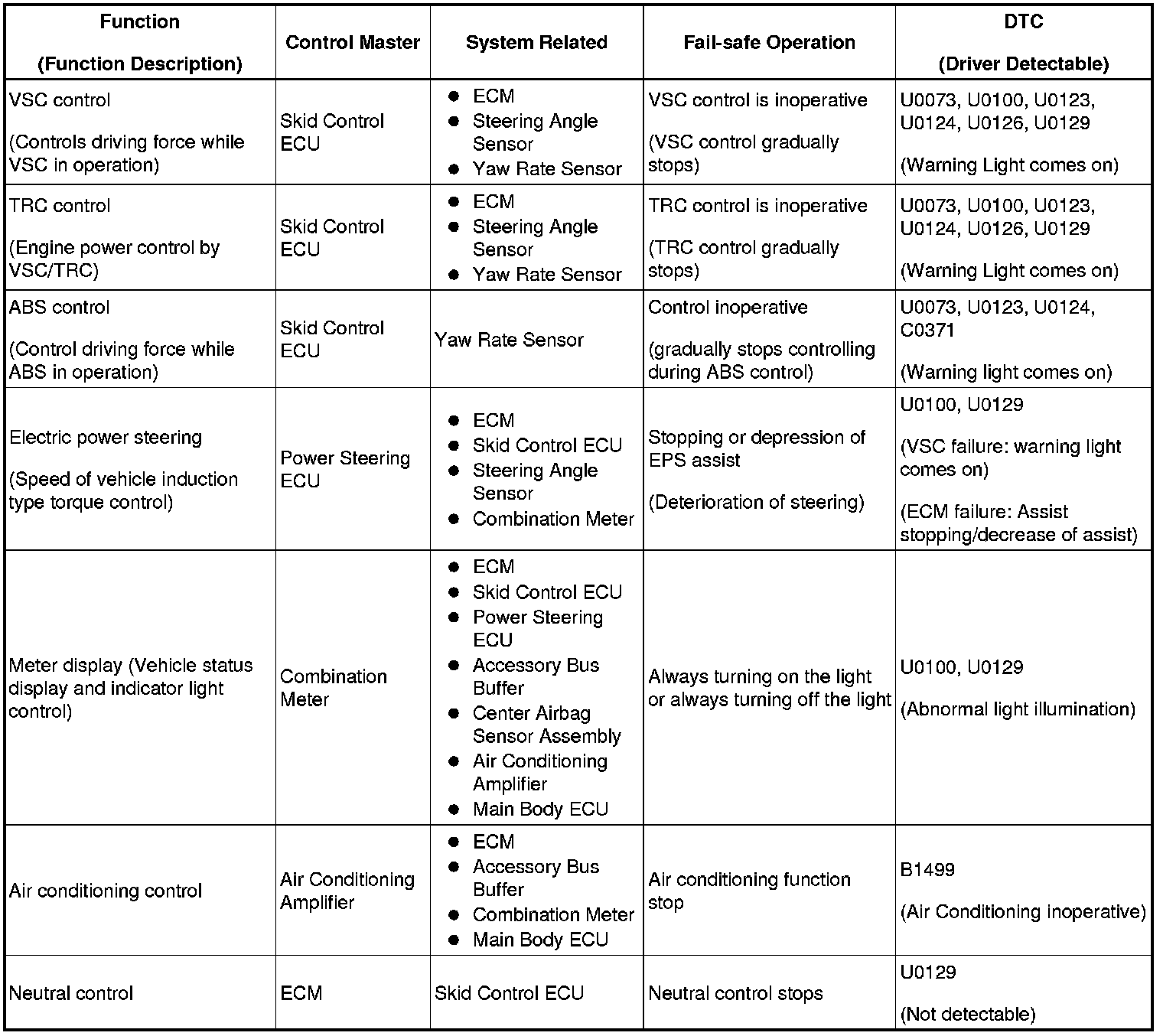 (a) When communication fails in any of the CAN bus wires (communication wires) due to a short circuit or other causes, the fail-safe function, which is specified for each system, operates to prevent the system from malfunctioning.