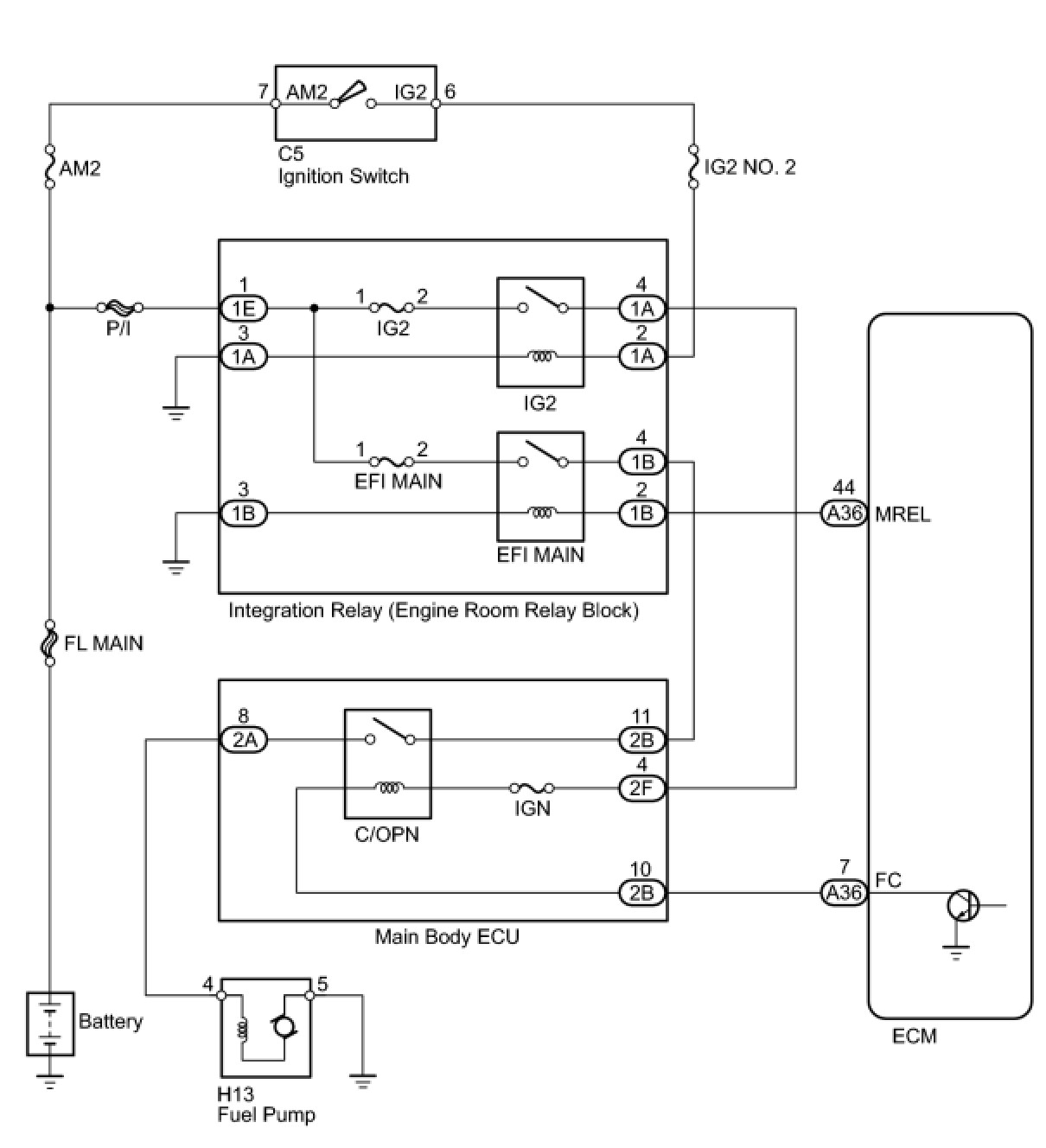 2AZ-FE ENGINE CONTROL SYSTEM: SFI SYSTEM: Fuel Pump Control Circuit