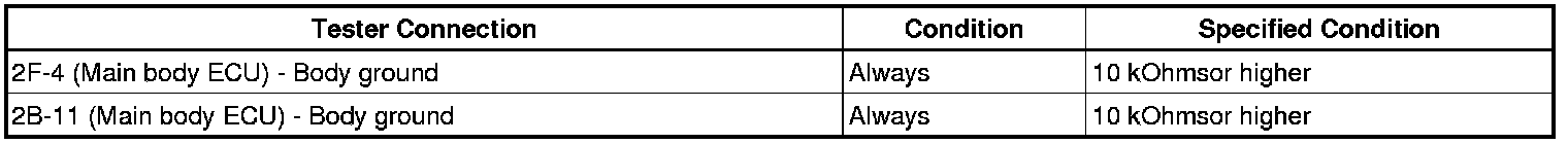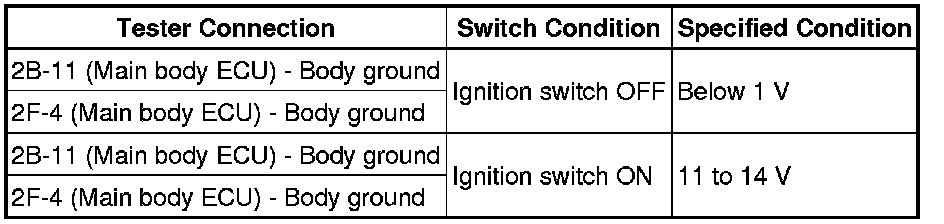 (a) Measure the voltage between the terminal of the main body ECU and the body ground when the ignition switch is turned to ON and OFF.