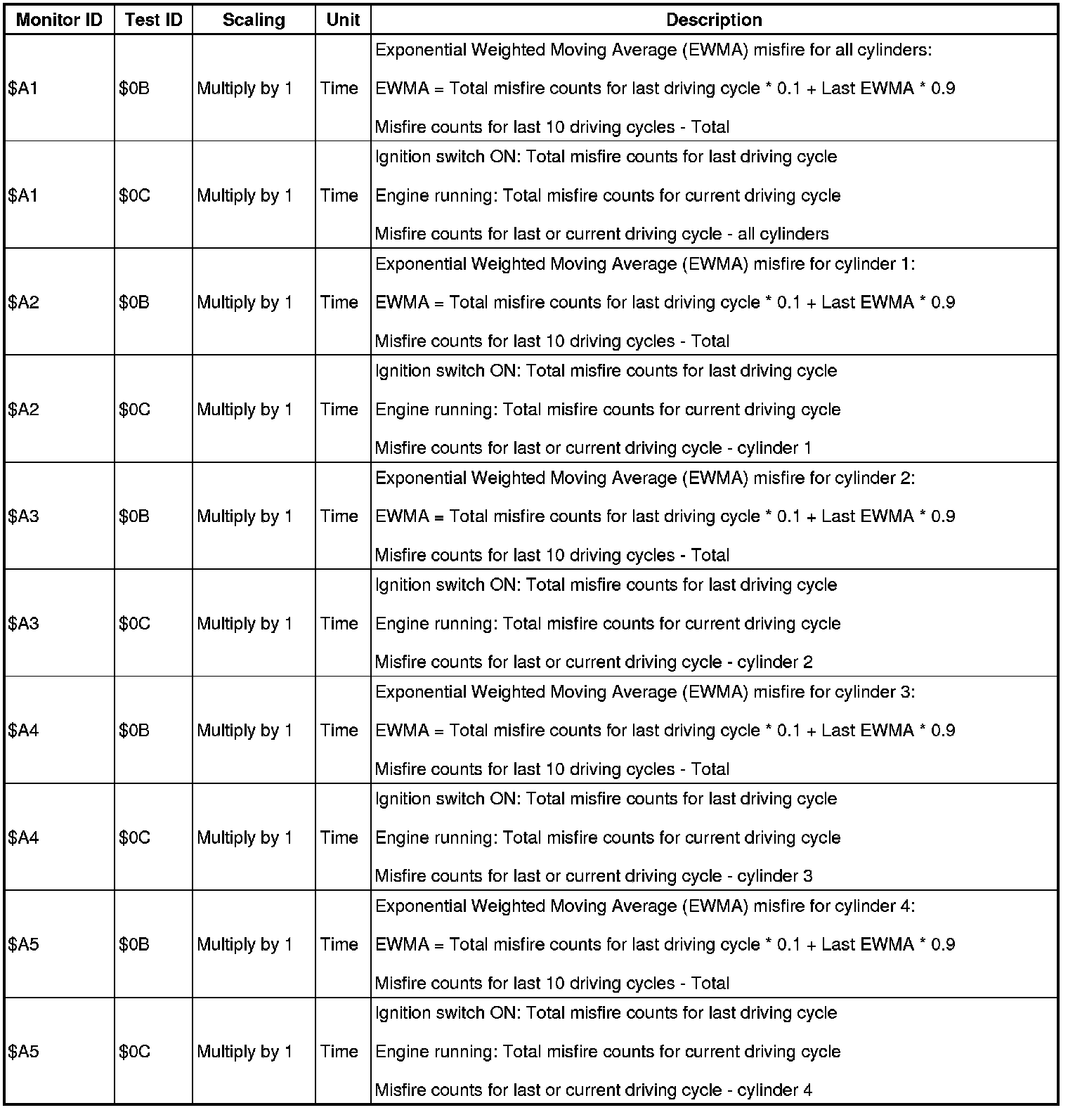 If you use a generic scan tool, multiply the value by the scaling value listed below.