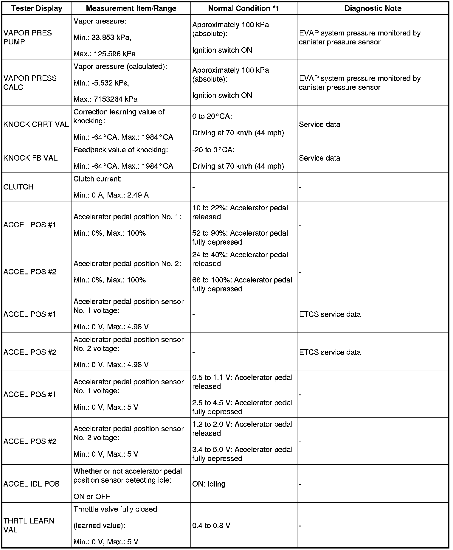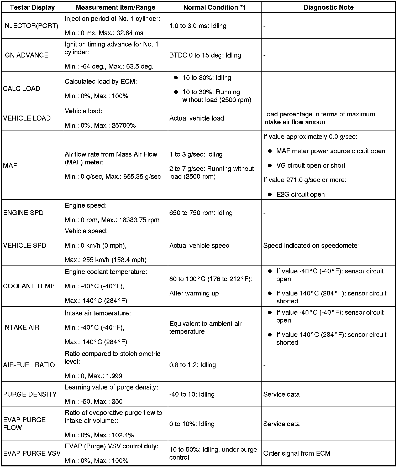 - *1: If no idling conditions are specified, the shift lever should be in the N or P (neutral) position, and the A/C switch and all accessory switches should be OFF.