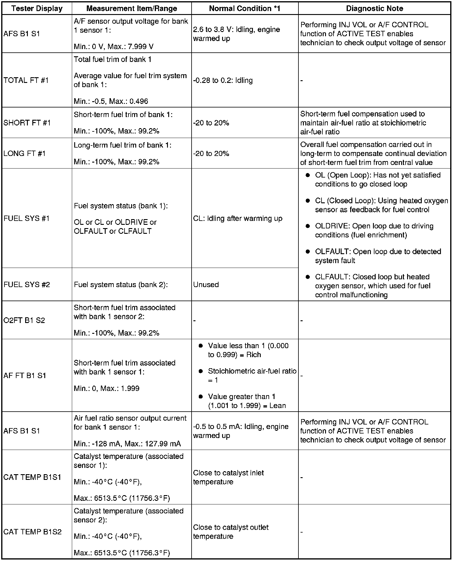- *2: Values are only displayed when performing the ACTIVE TEST: VVT B1. For other ACTIVE TESTs, the DATA LIST value will be 0.