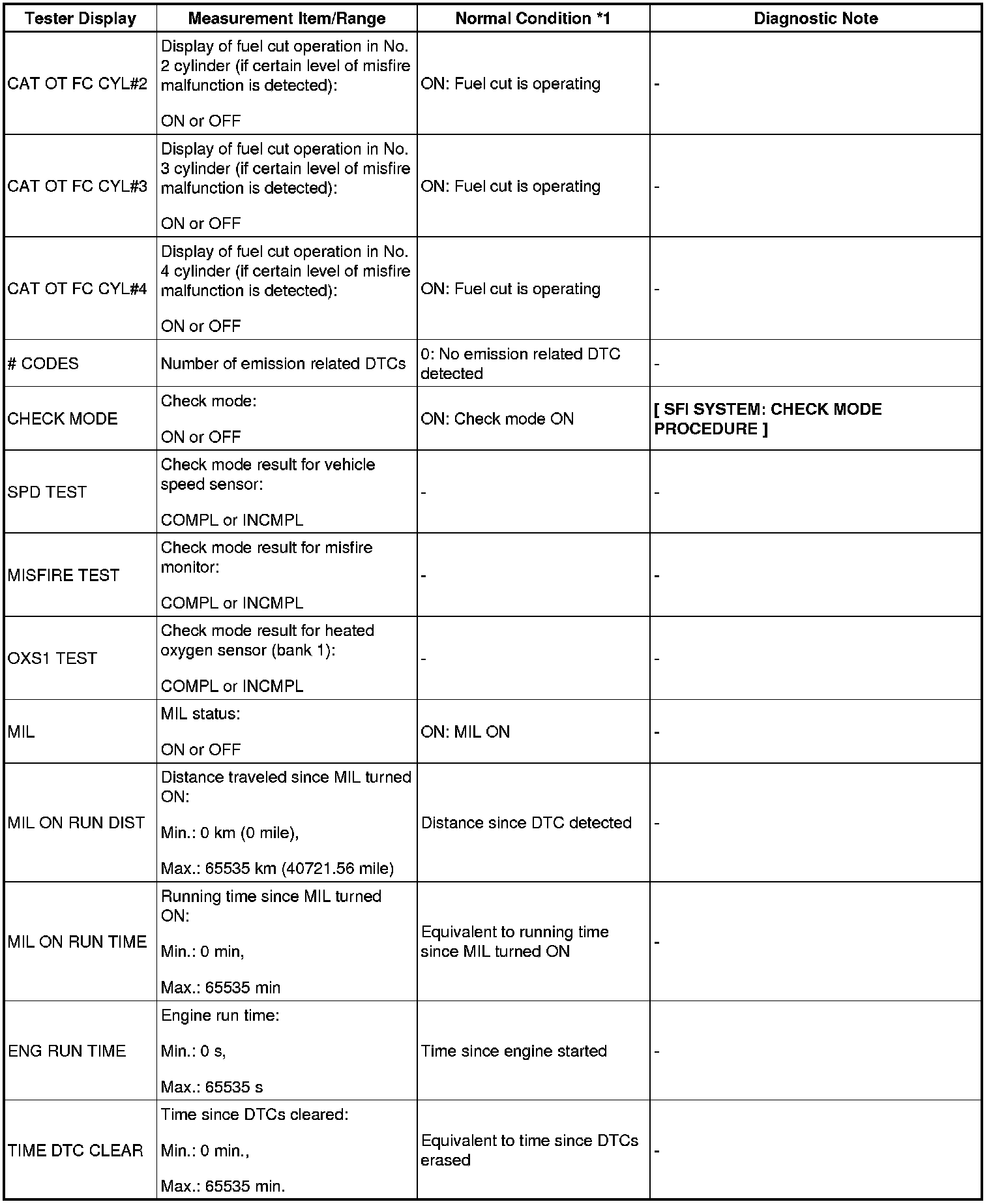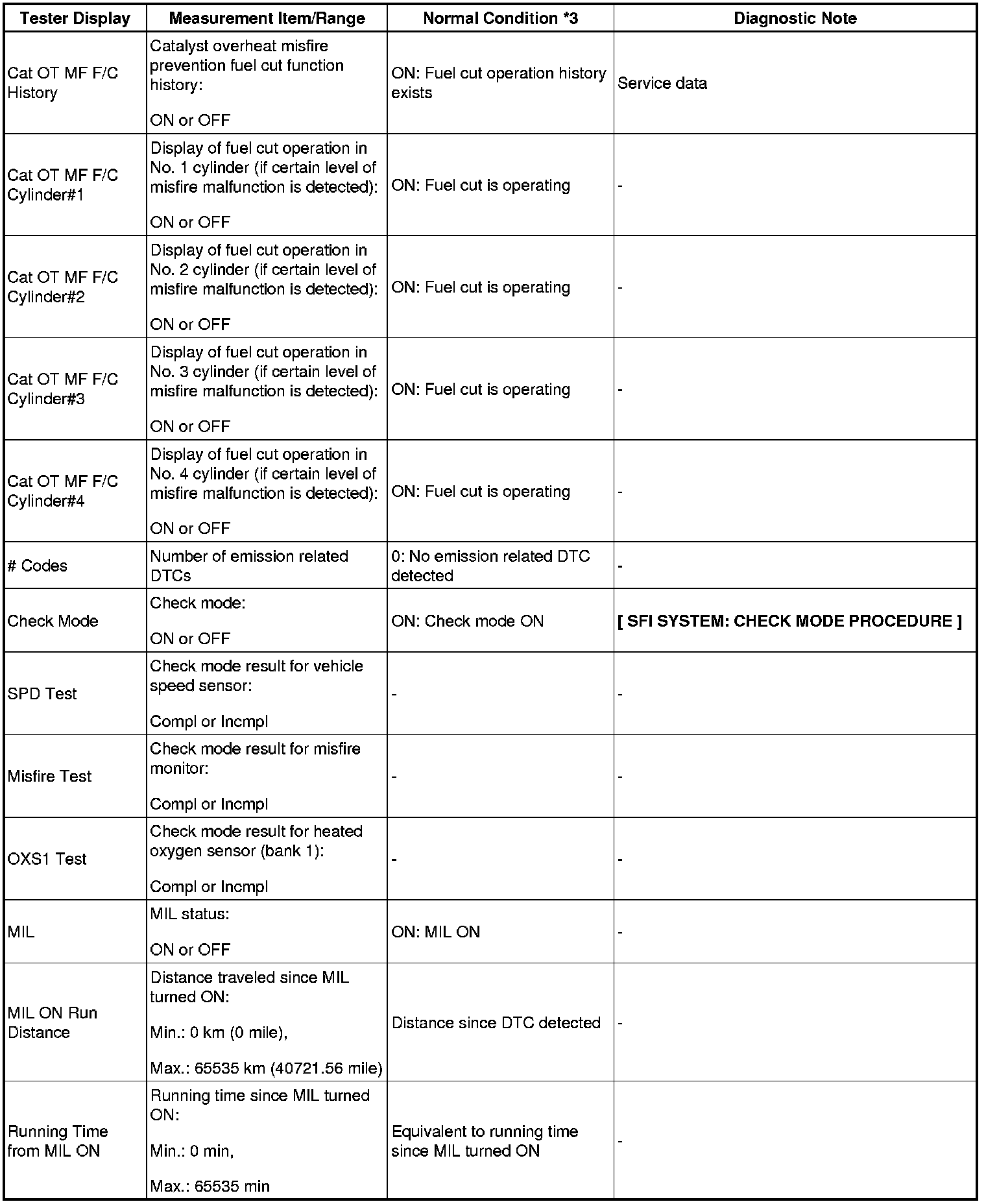 NOTE: *1: If the display of the DATA LIST's CAT OT MF F/C item is NOT AVL, perform this ACTIVE TEST with the vehicle stopped and the engine idling. If the display of the DATA LIST's CAT OT MF F/C item is AVAIL, perform this ACTIVE TEST as described below.