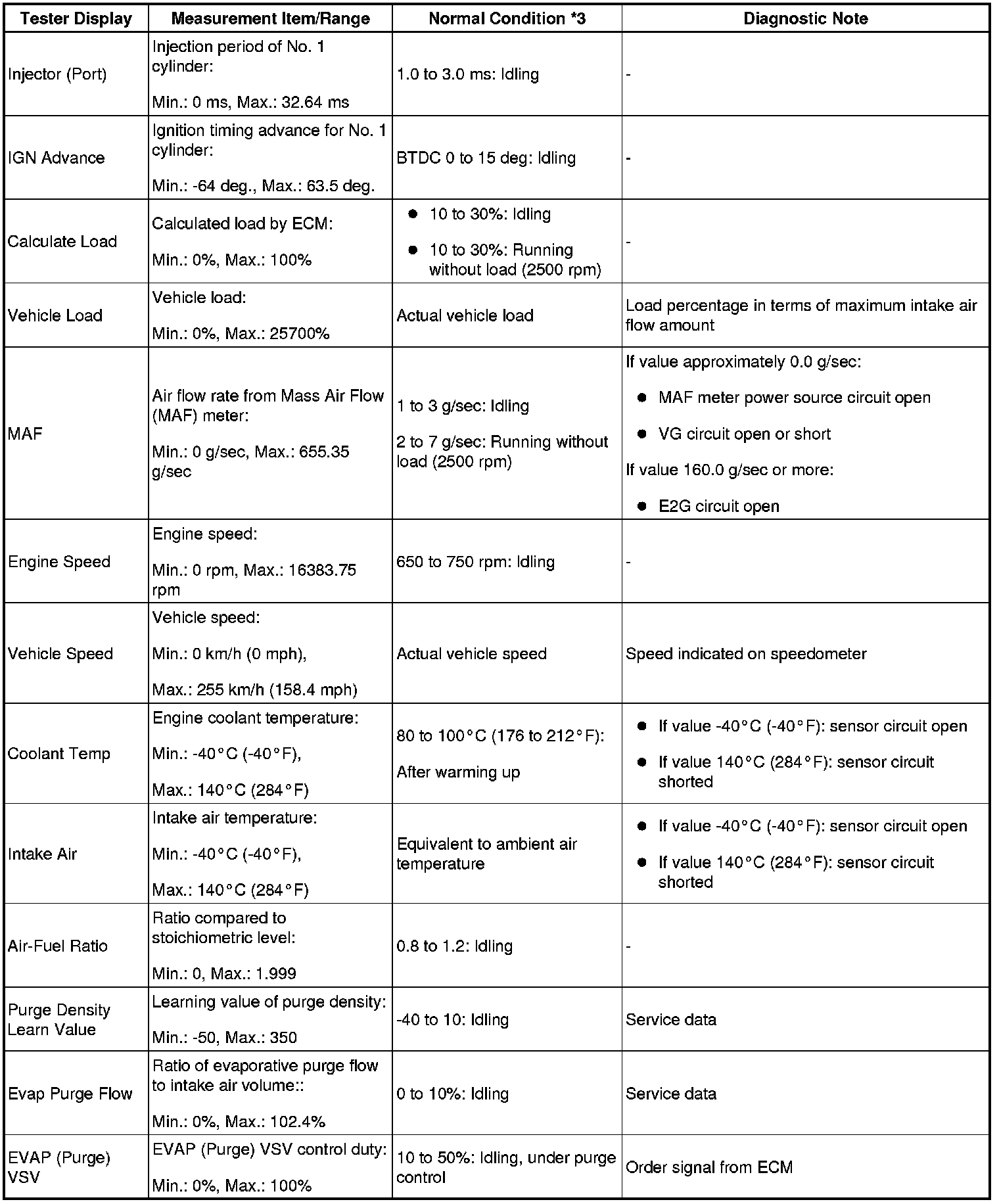 - *3: If no idling conditions are specified, the shift lever should be in the N or P position, and the A/C switch and all accessory switches should be OFF.