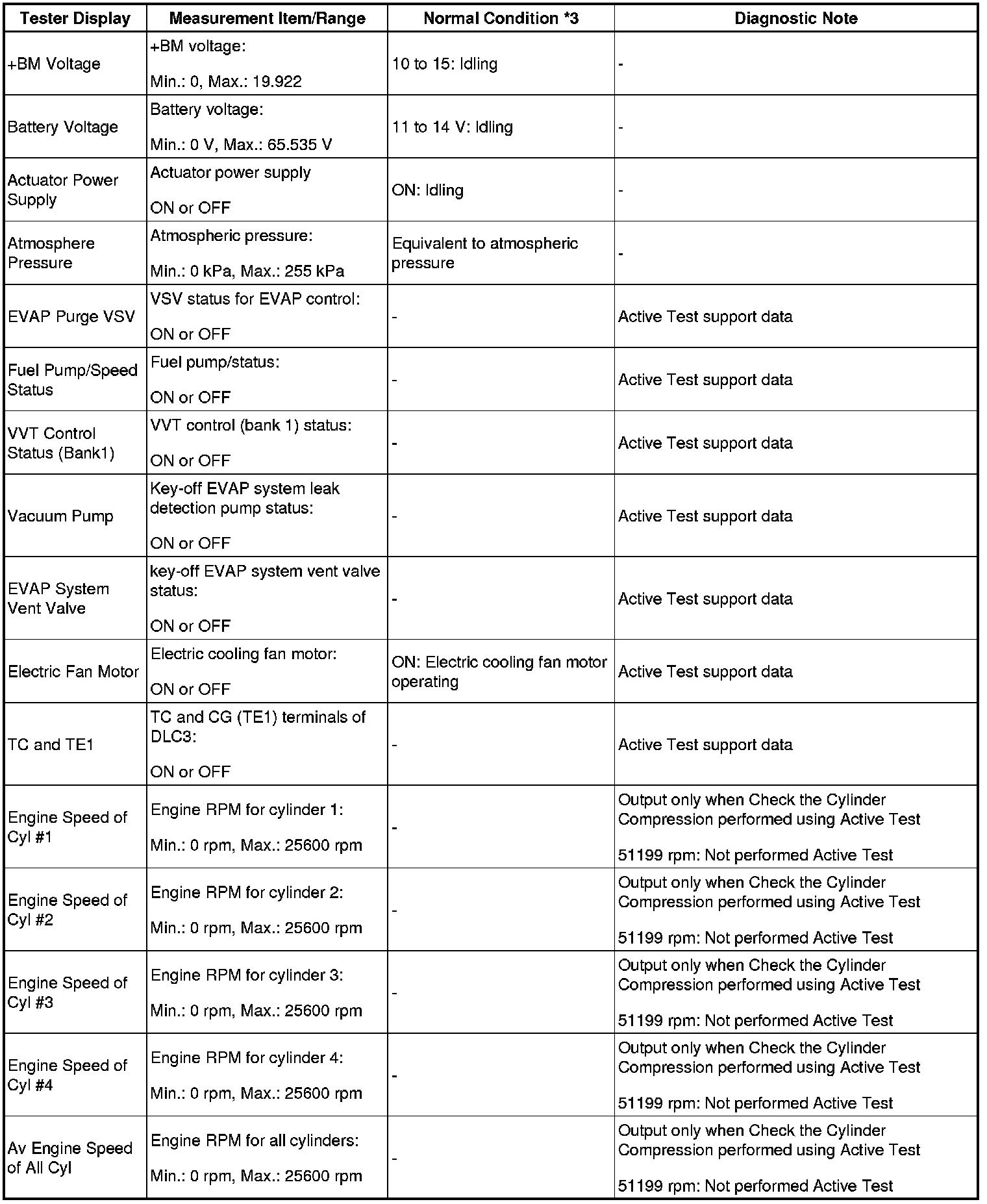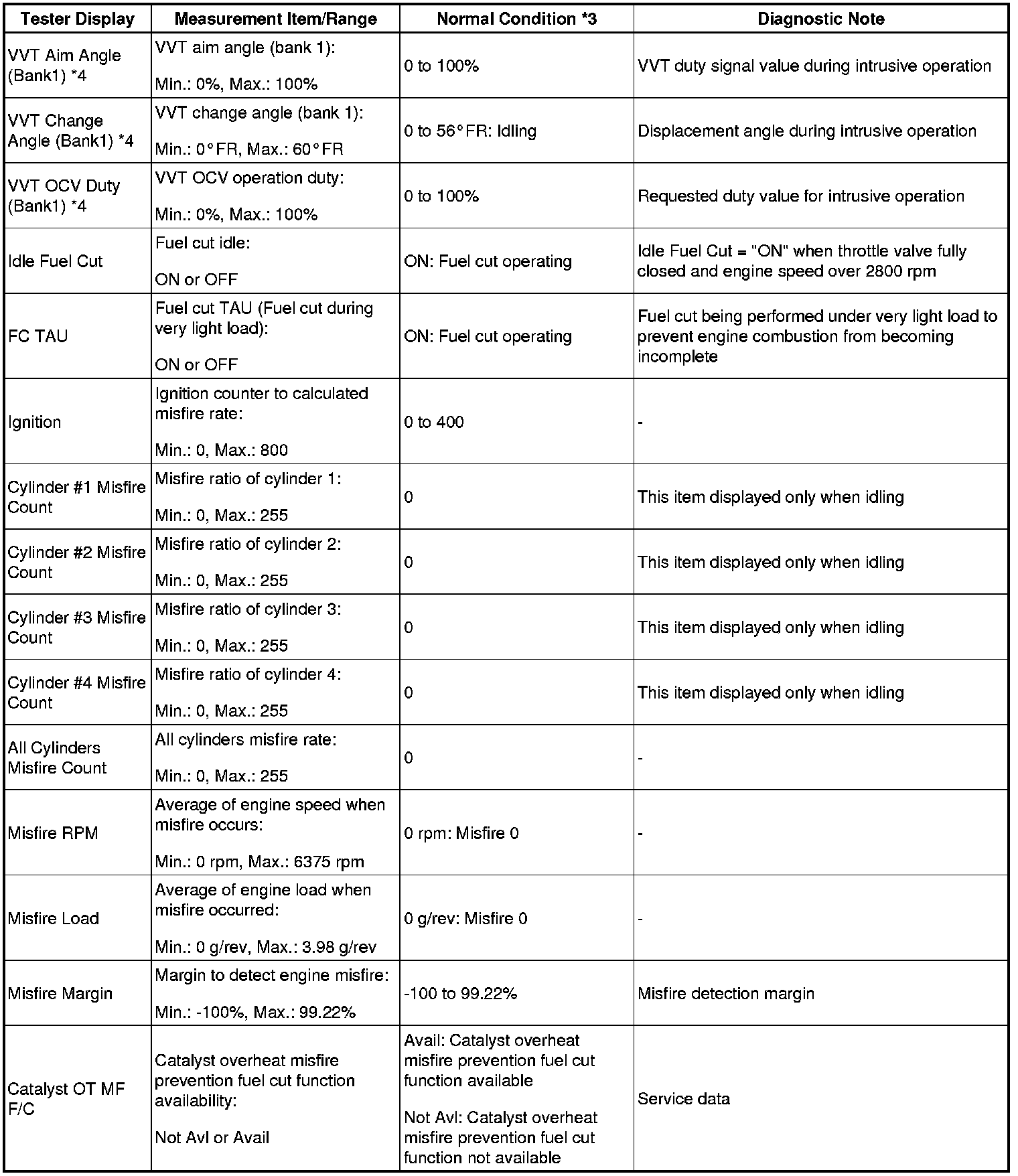 - *4: Values are only displayed when performing the Active Tests: Control the VVT Linear (Bank1). For other Active Tests, the value will be 0.