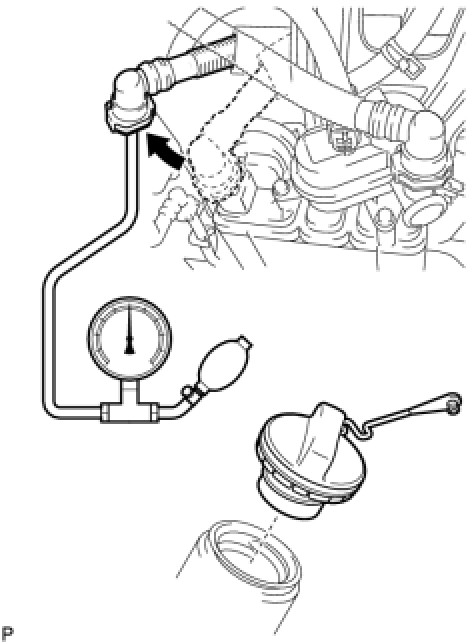 HINT: Perform this inspection with the fuel tank less than 90% full. When the fuel tank is full, the fuel cutoff valve closes and pressure is released through the 1.5 mm orifice. As a result, when the fuel tank cap is removed, the pressure does not decrease smoothly.