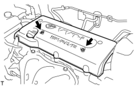 (a) Install the engine cover with the 2 nuts.
