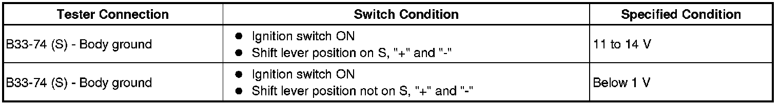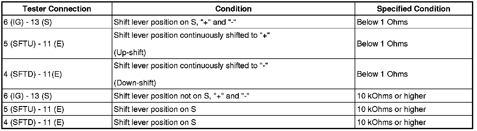Shifting to "+" once raises the shift range position by one, and shifting to "-" lowers the shift range position by one.