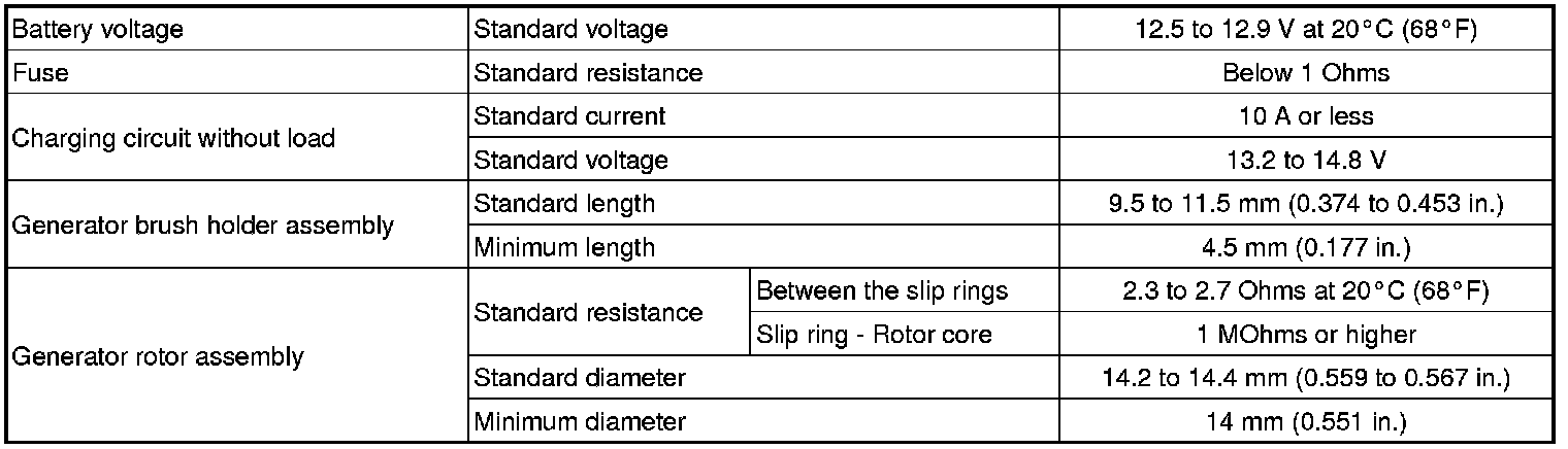 SERVICE SPECIFICATIONS: 2AZ-FE CHARGING: SERVICE DATA