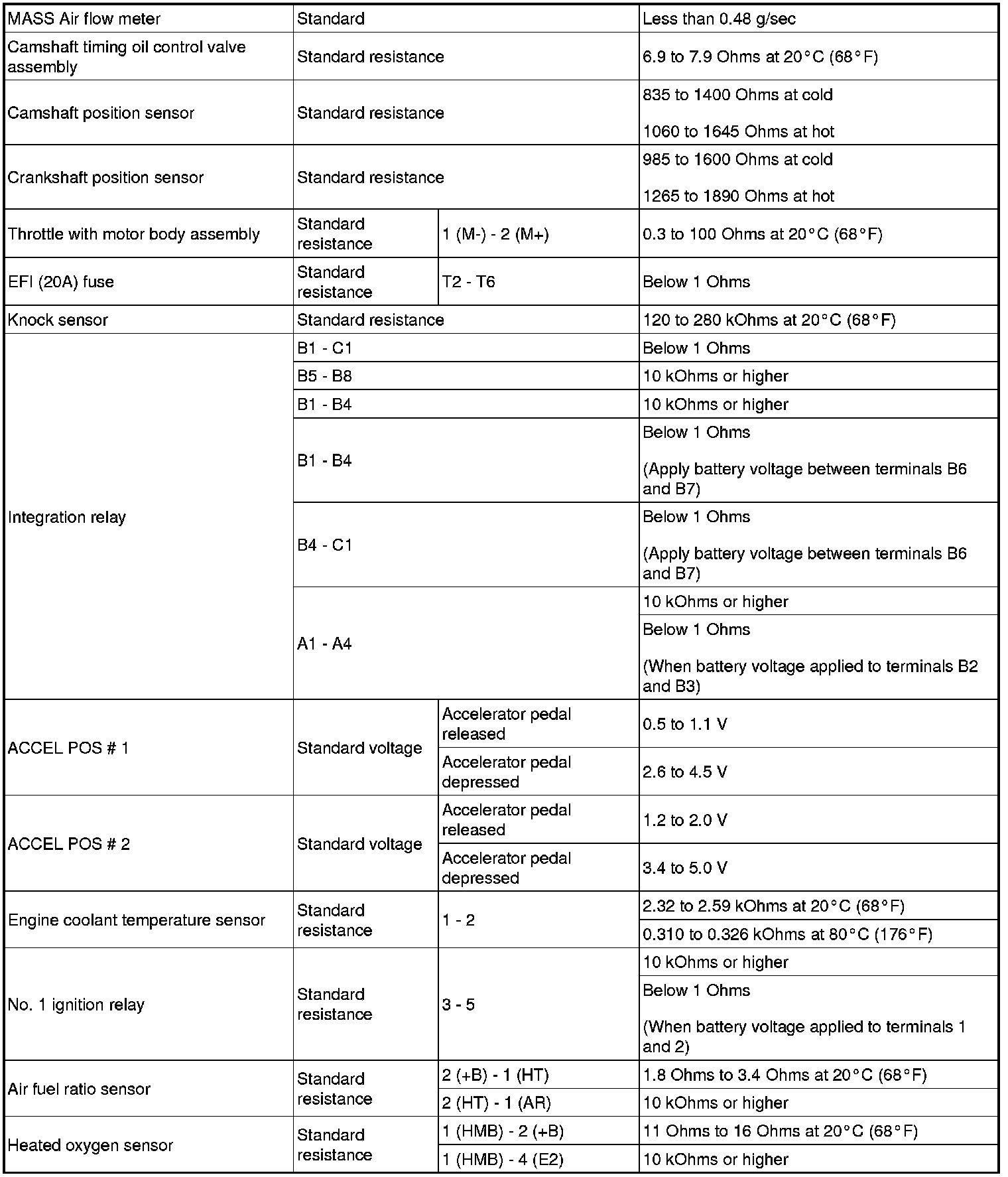 SERVICE SPECIFICATIONS: 2AZ-FE ENGINE CONTROL SYSTEM: SERVICE DATA