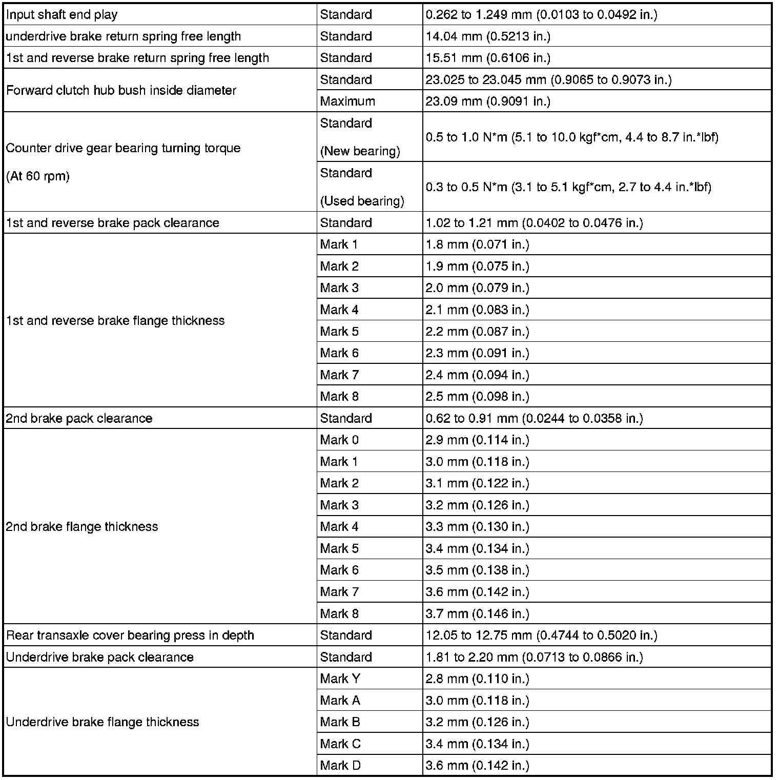 SERVICE SPECIFICATIONS: U241E AUTOMATIC TRANSAXLE: SERVICE DATA