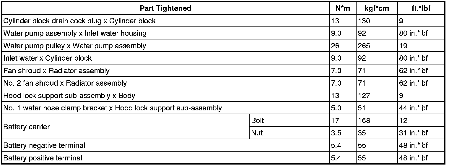 SERVICE SPECIFICATIONS: 2AZ-FE COOLING: TORQUE SPECIFICATIONS