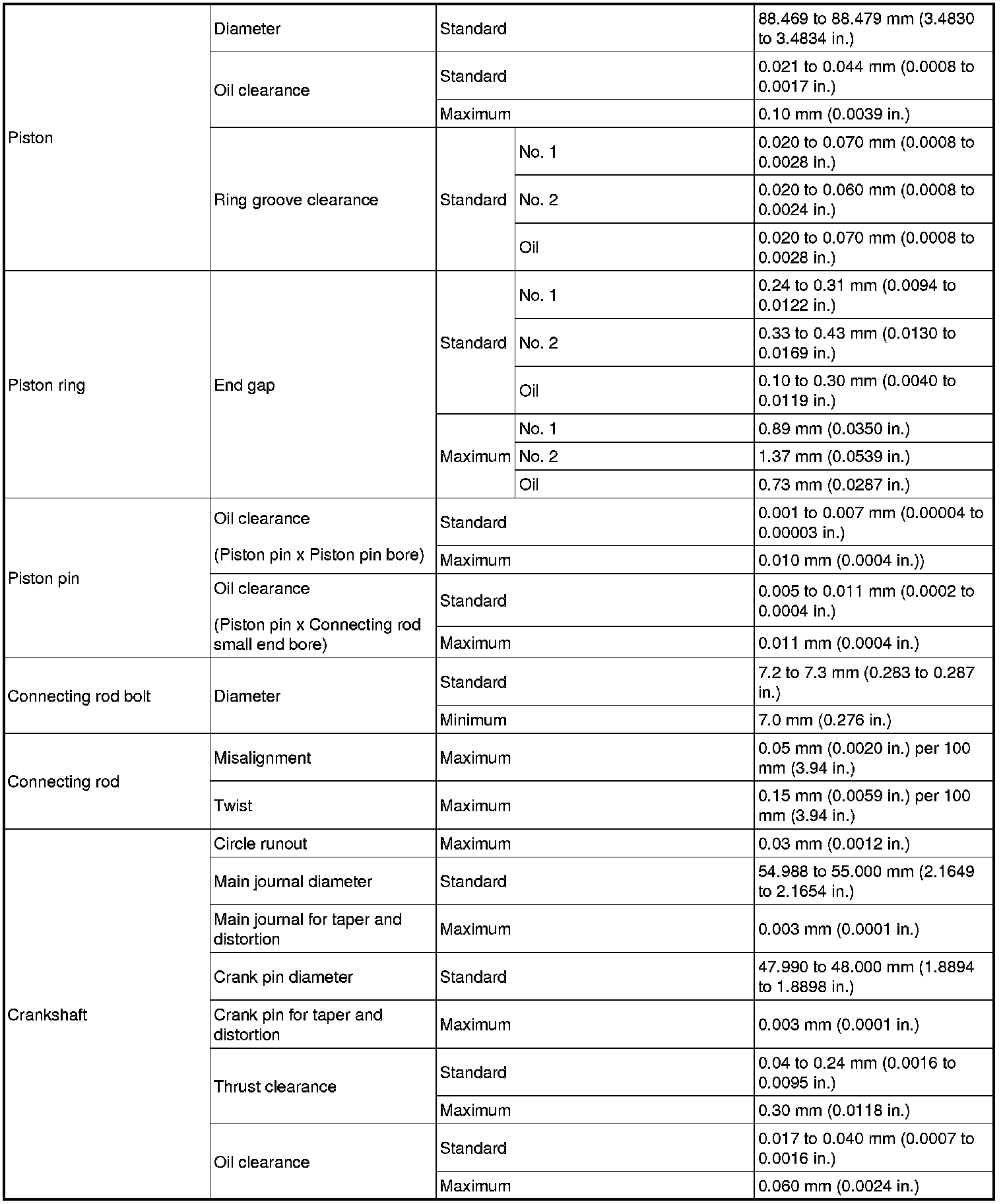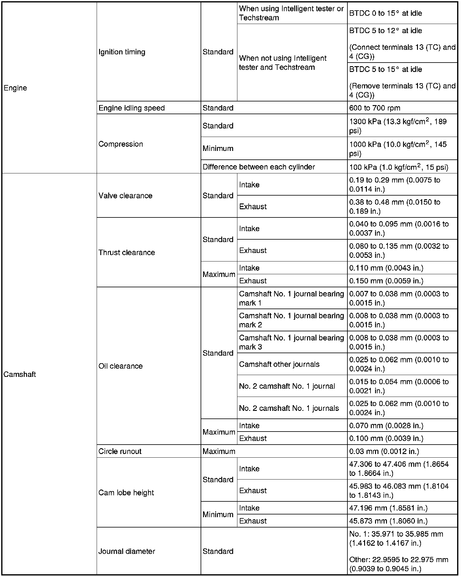 SERVICE SPECIFICATIONS: 2AZ-FE ENGINE MECHANICAL: SERVICE DATA