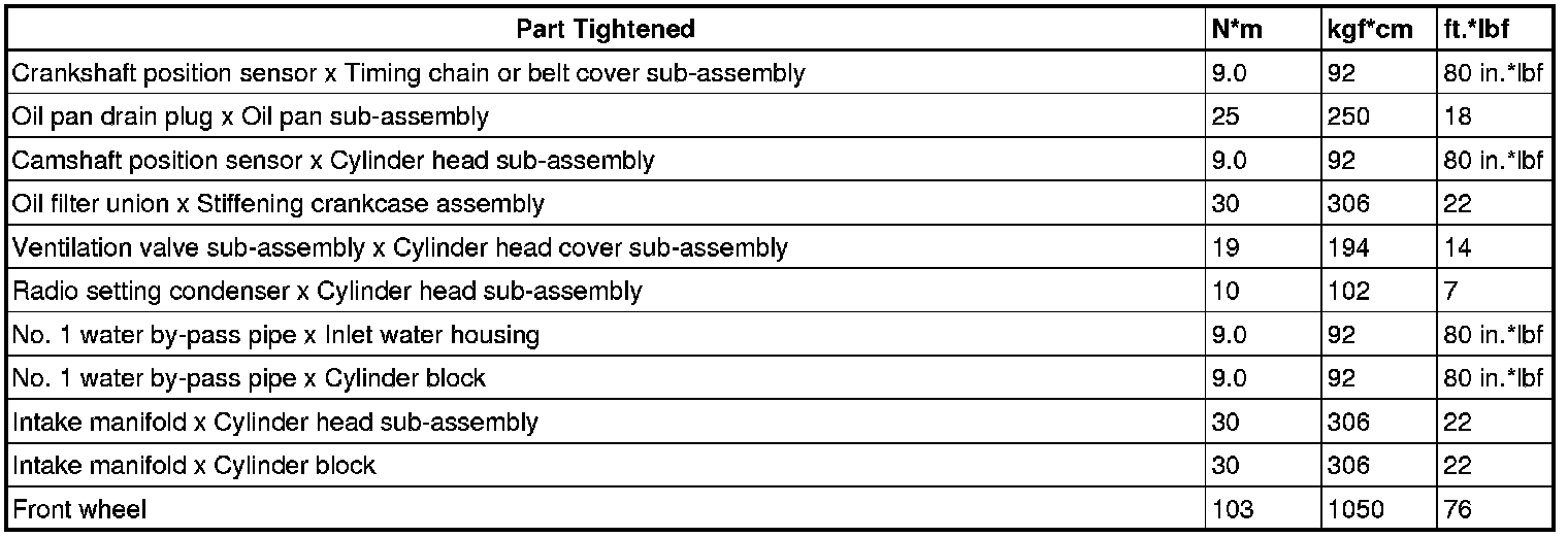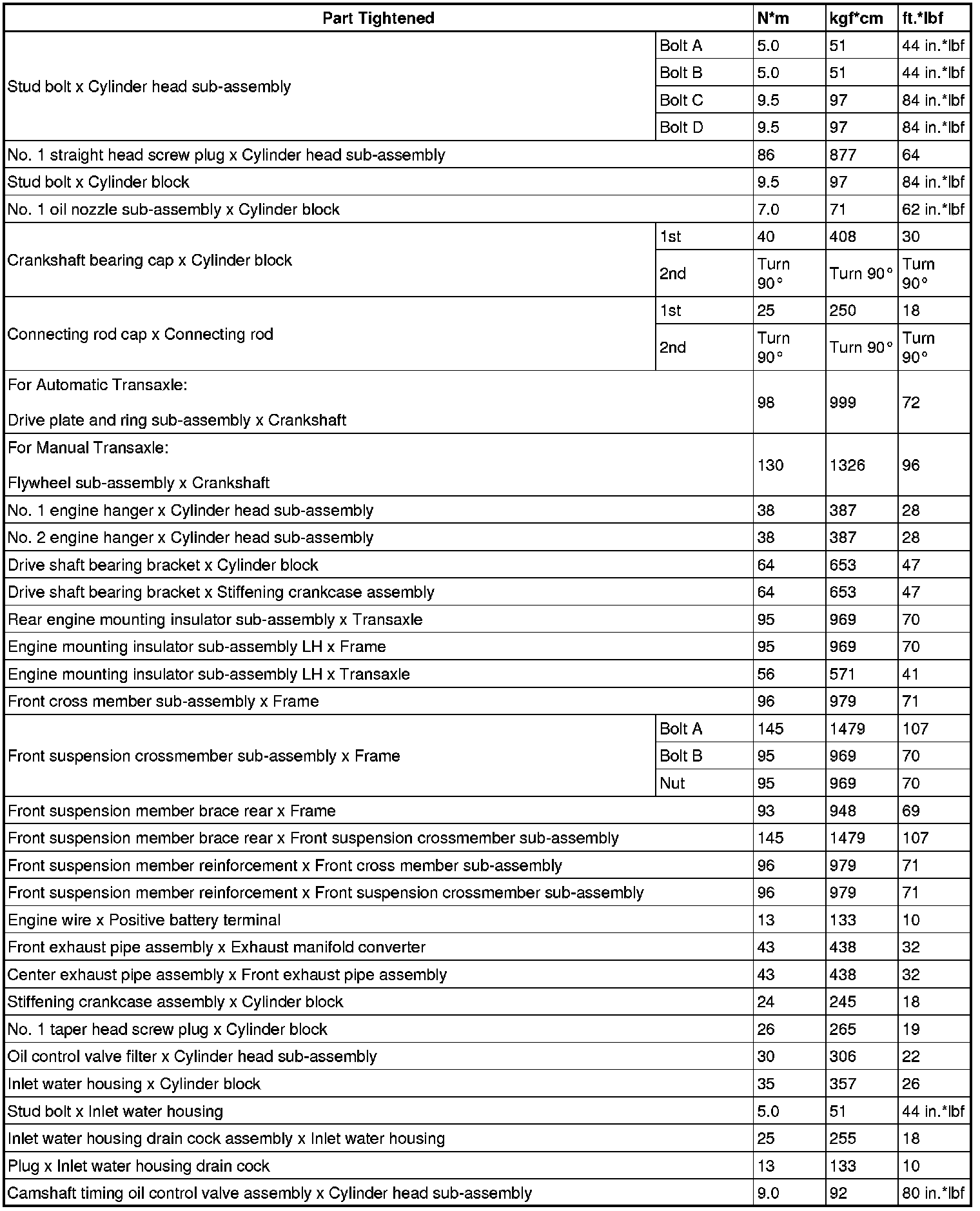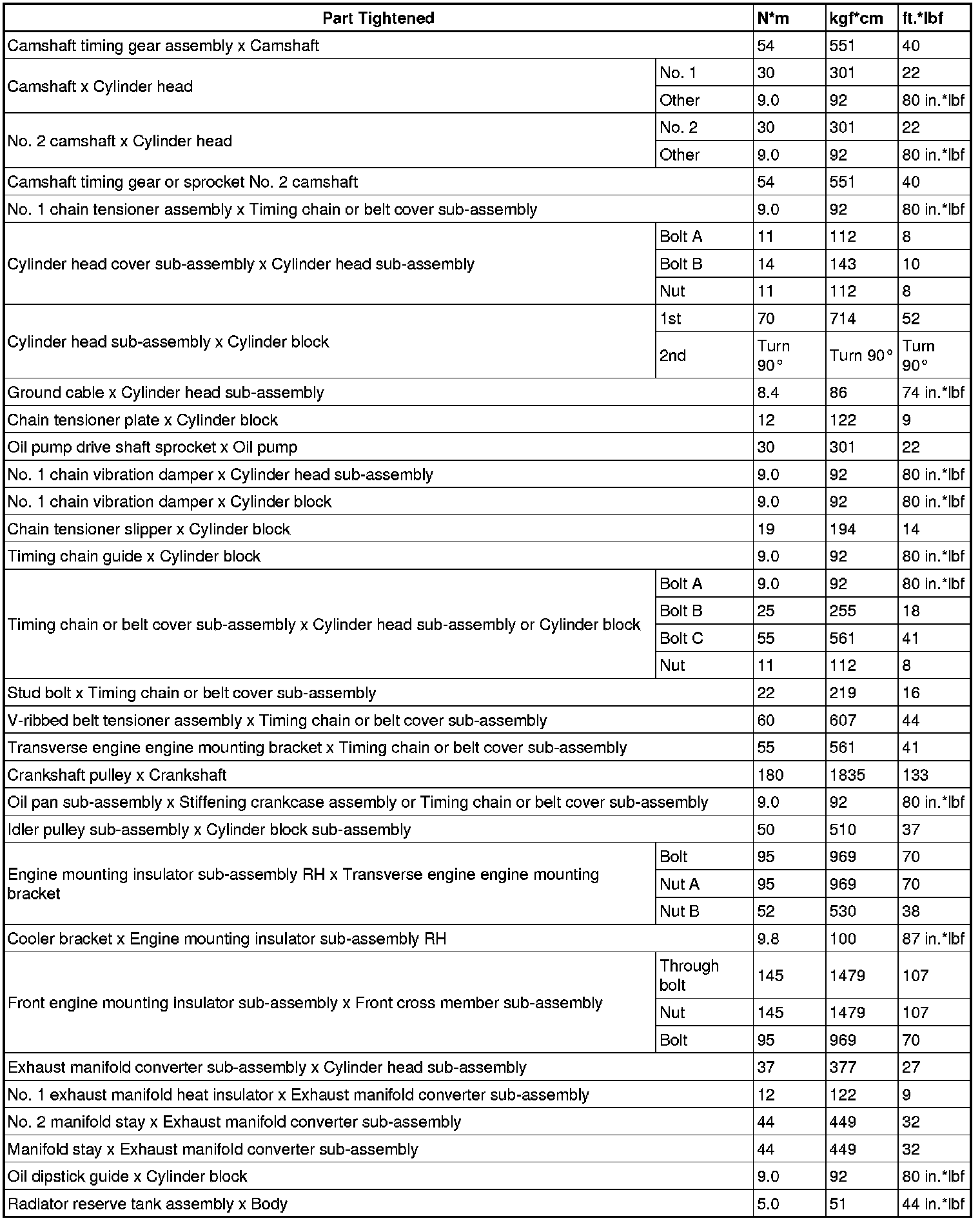 SERVICE SPECIFICATIONS: 2AZ-FE ENGINE MECHANICAL: TORQUE SPECIFICATIONS