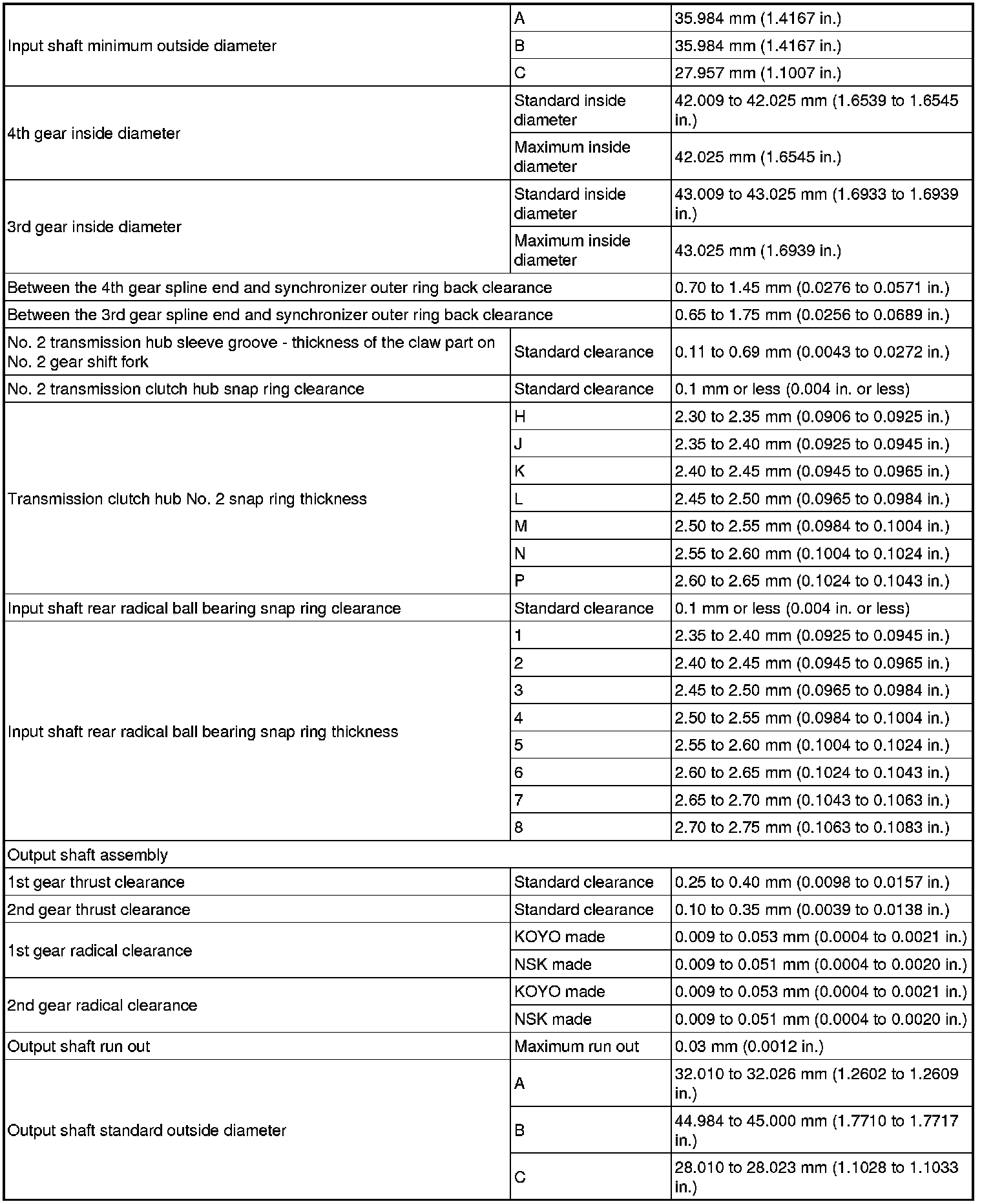 SERVICE SPECIFICATIONS: E351 MANUAL TRANSAXLE: SERVICE DATA