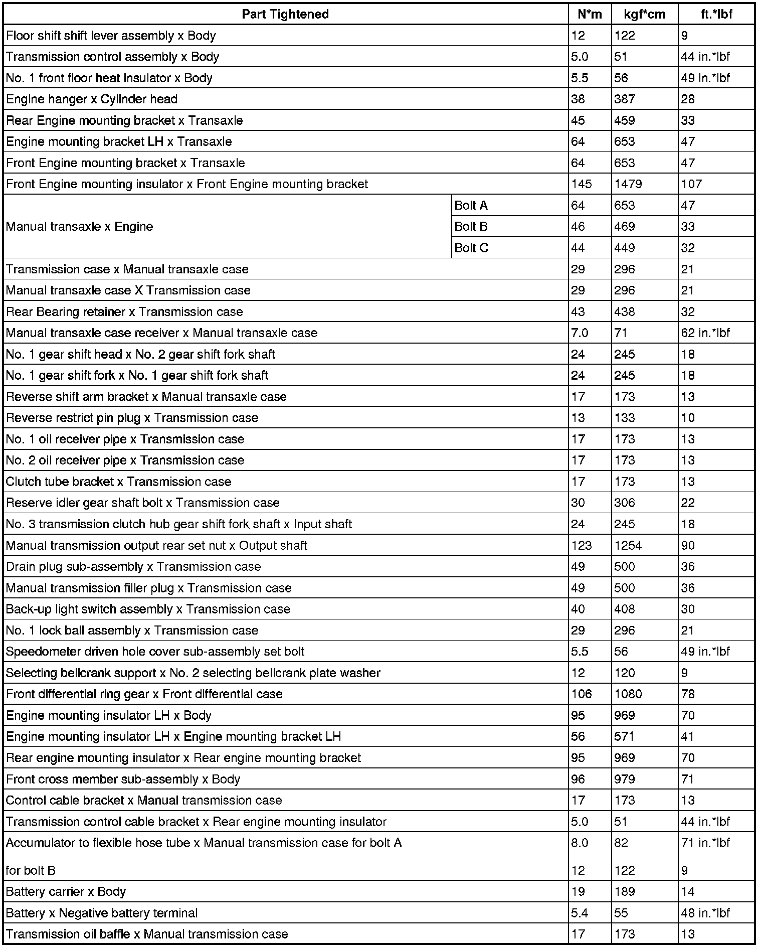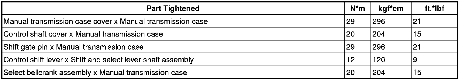 SERVICE SPECIFICATIONS: E351 MANUAL TRANSAXLE: TORQUE SPECIFICATIONS
