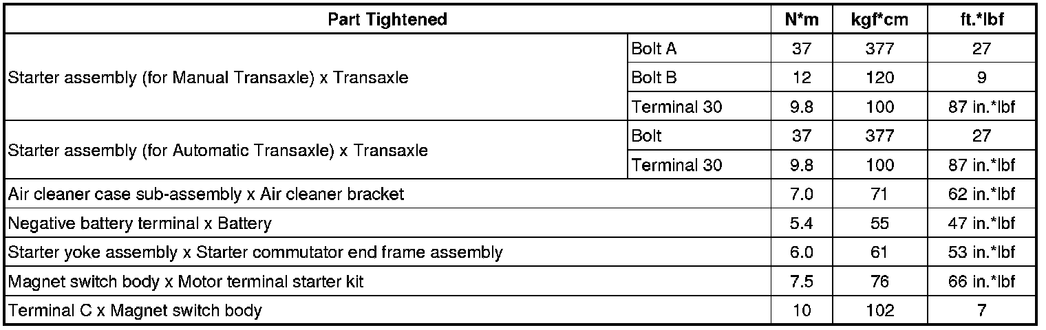 SERVICE SPECIFICATIONS: 2AZ-FE STARTING: TORQUE SPECIFICATIONS