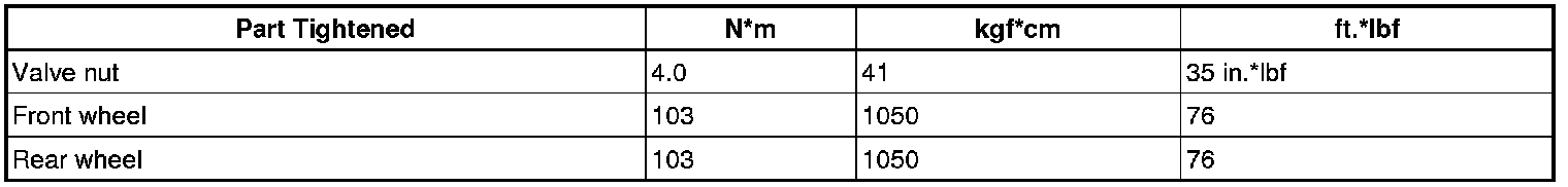 SERVICE SPECIFICATIONS: TIRE AND WHEEL: TORQUE SPECIFICATIONS