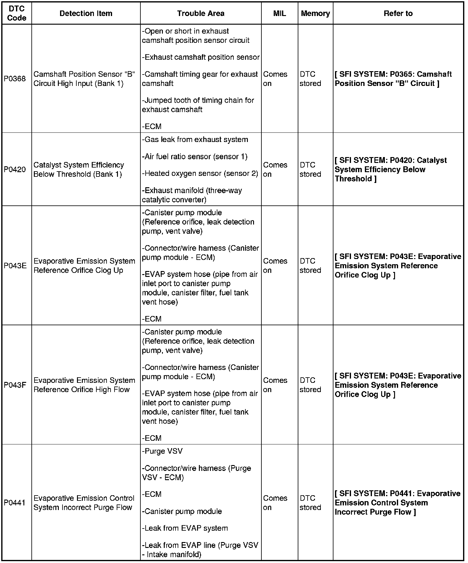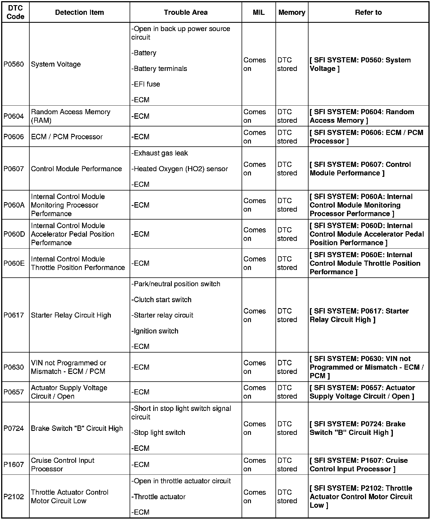 DIAGNOSTIC TROUBLE CODE CHART
