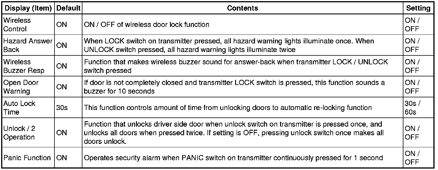 (d) Enter the following menus: Body Electrical / Main Body / Utility / Customize / Wireless Door Lock.