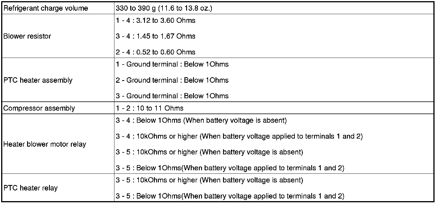 SERVICE SPECIFICATIONS: AIR CONDITIONING: SERVICE DATA
