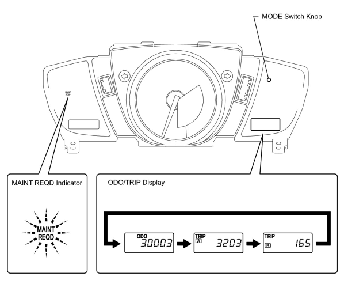 (b) Press the MODE switch knob on the upper right side of the combination meter until the odometer displays "TRIP A".