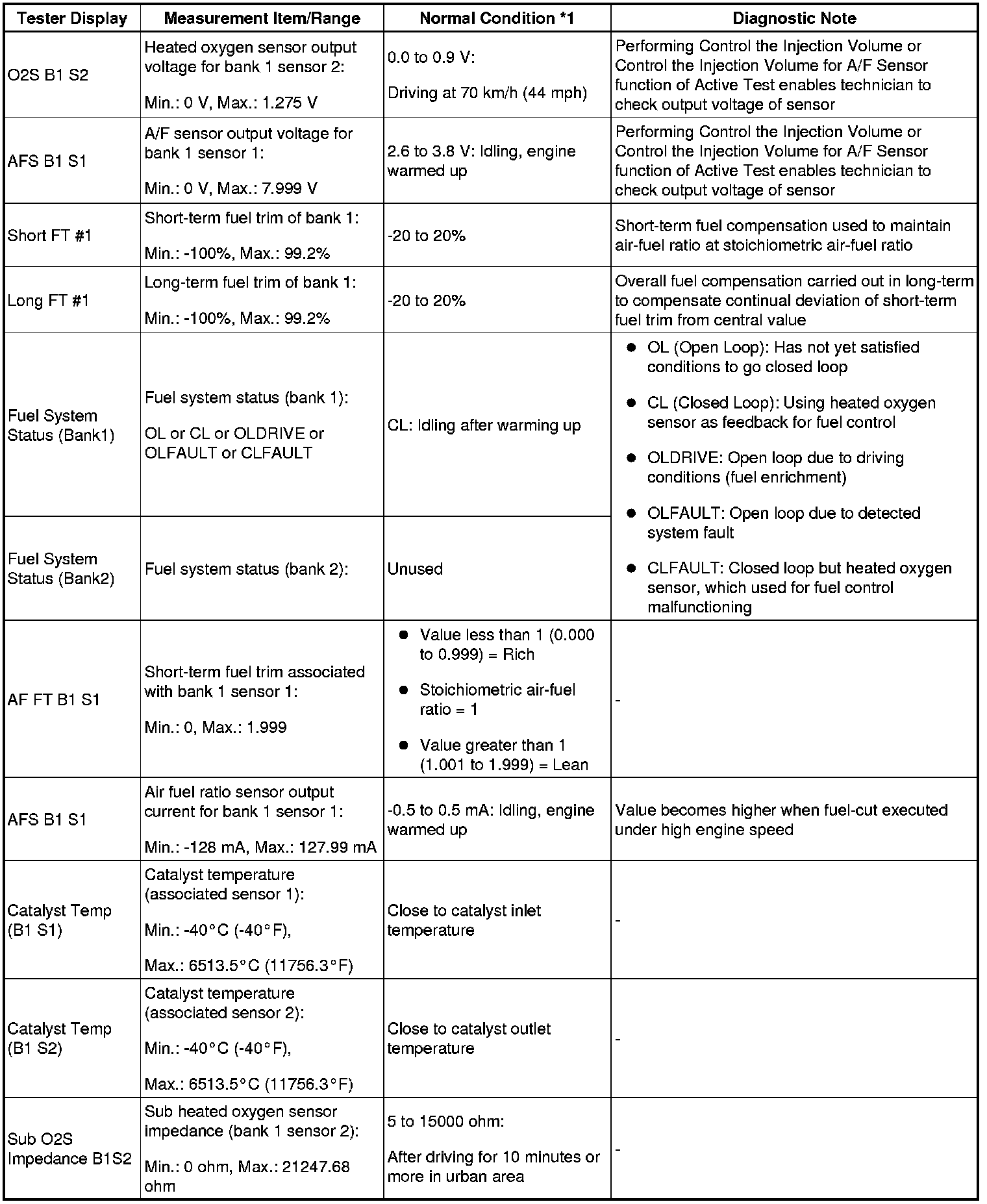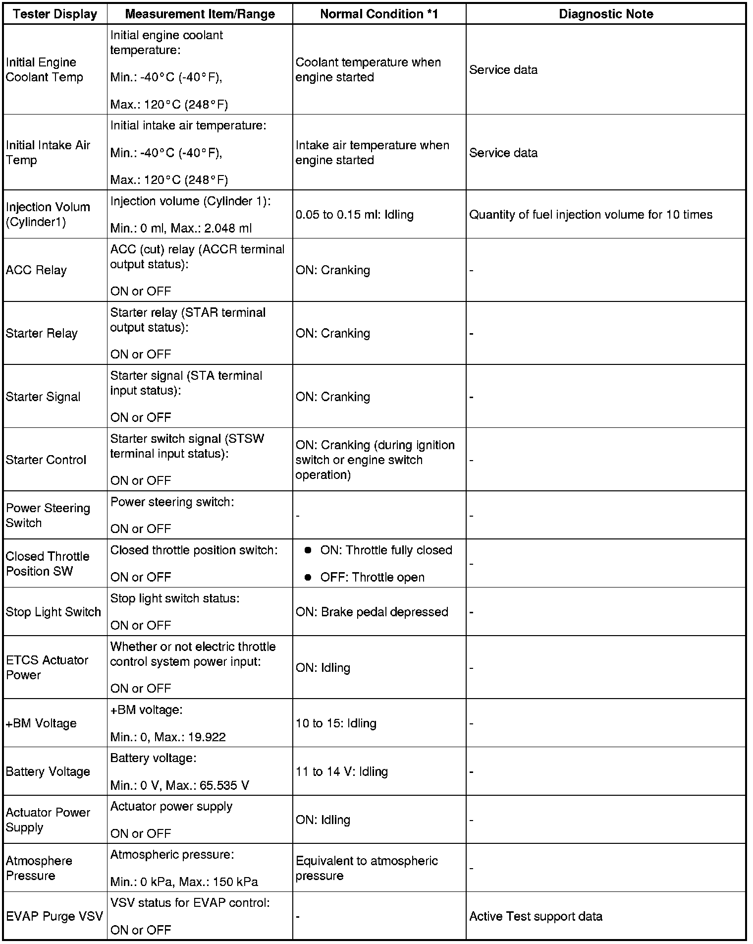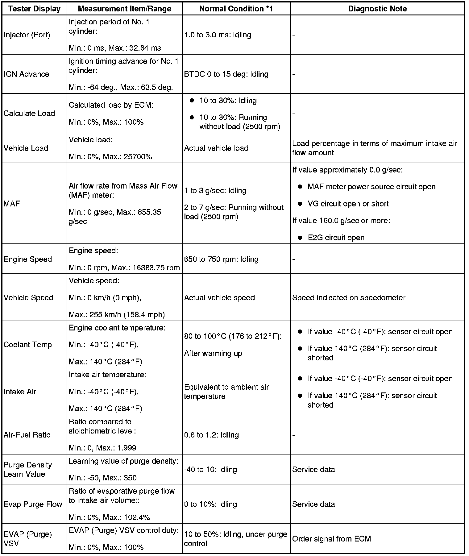 - *1: If no idling conditions are specified, the shift lever should be in the N or P position, and the A/C switch and all accessory switches should be OFF.