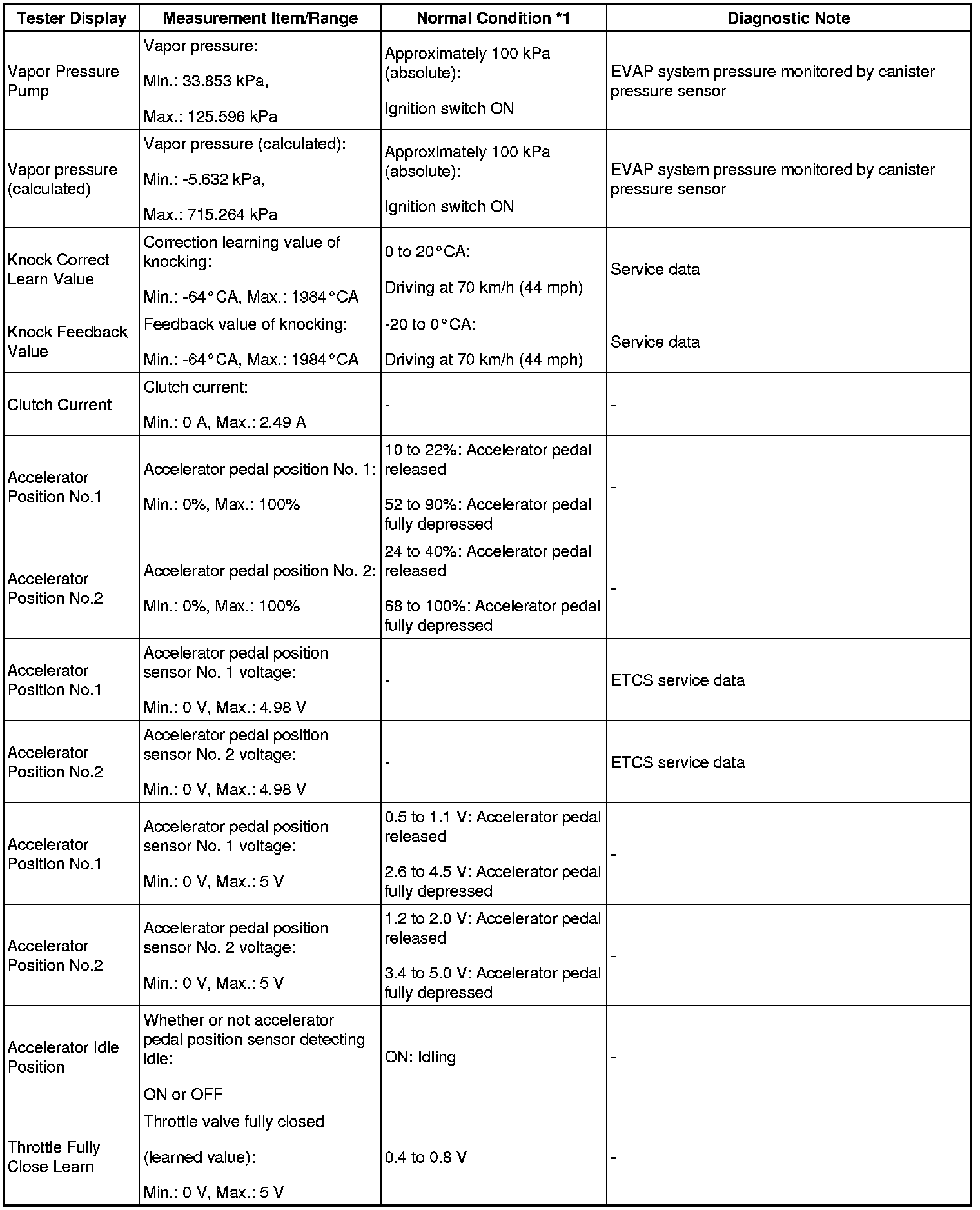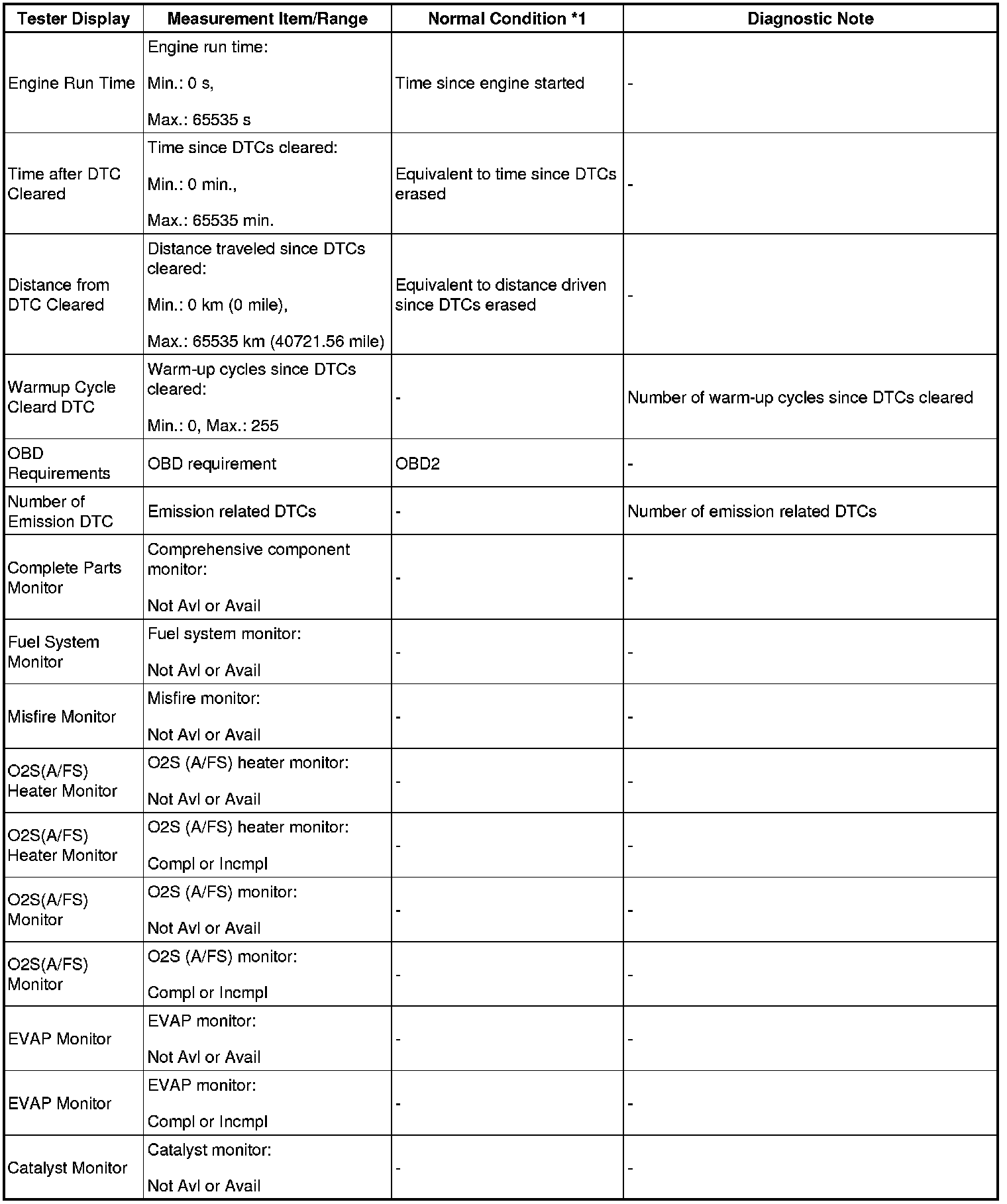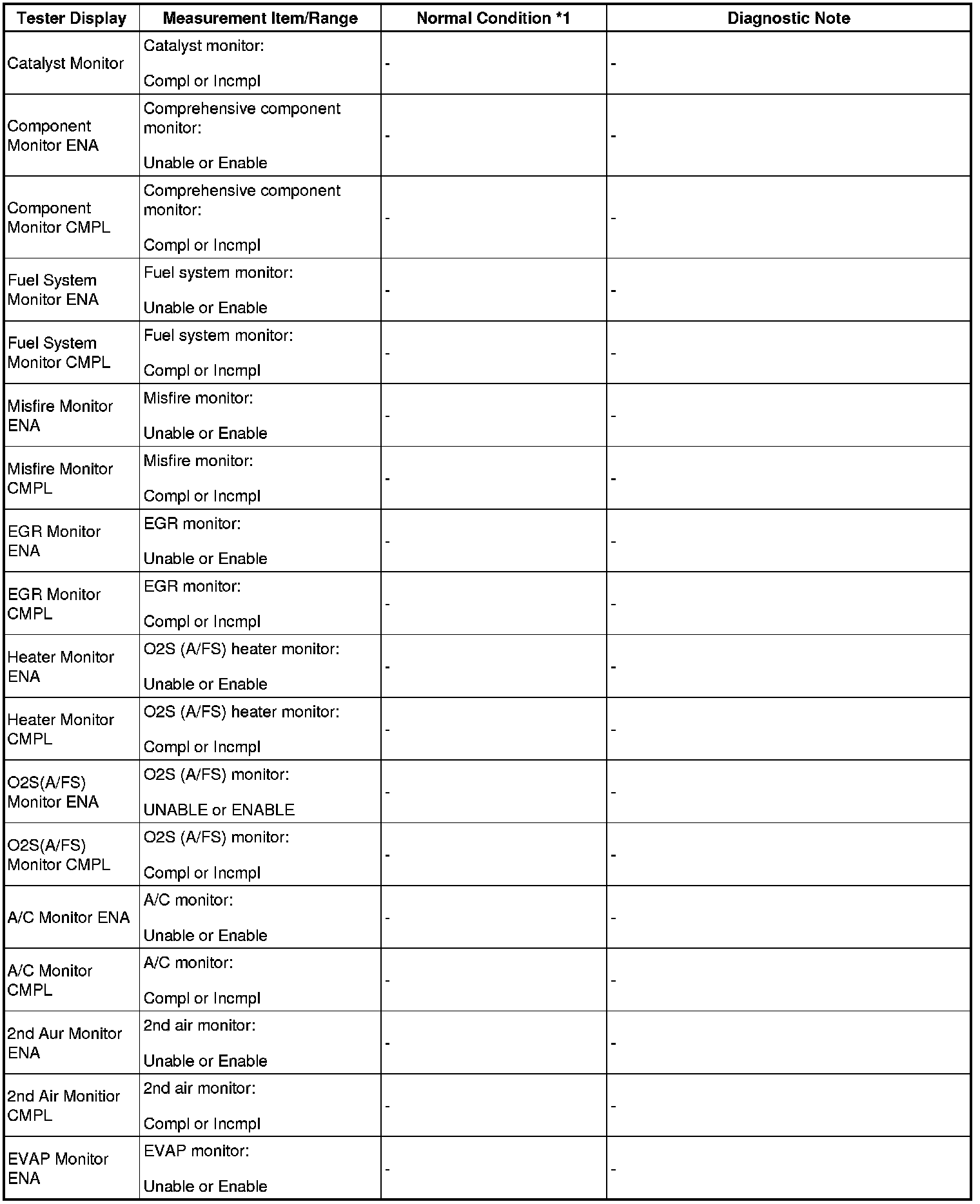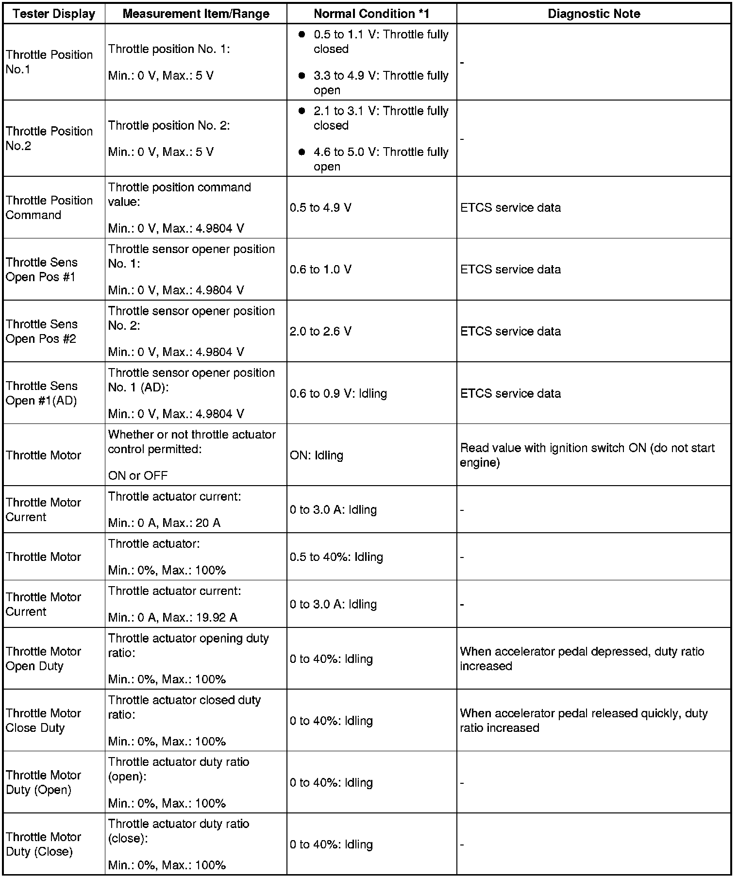 - *1: If no idling conditions are specified, the shift lever should be in the N or P position, and the A/C switch and all accessory switches should be OFF.