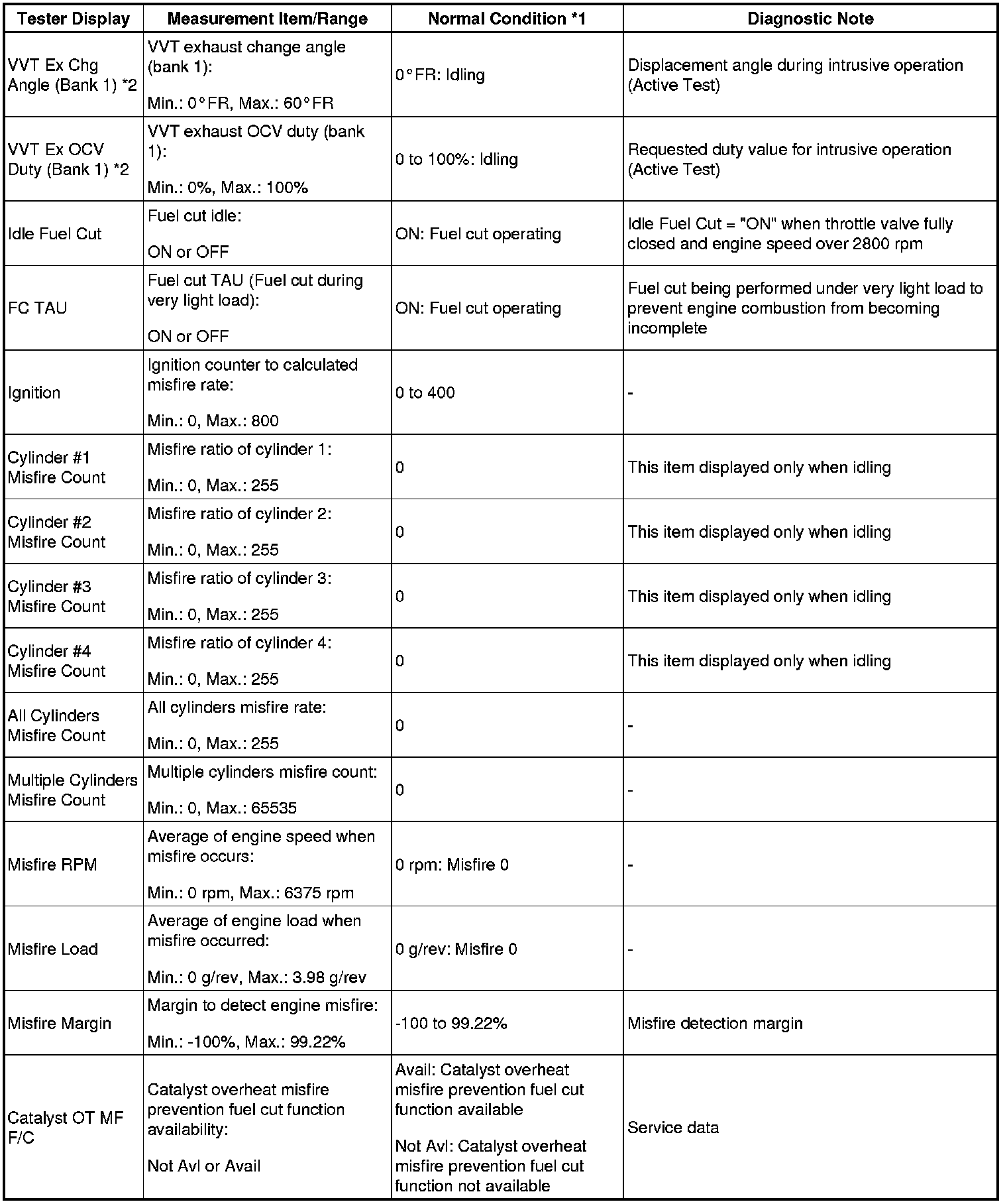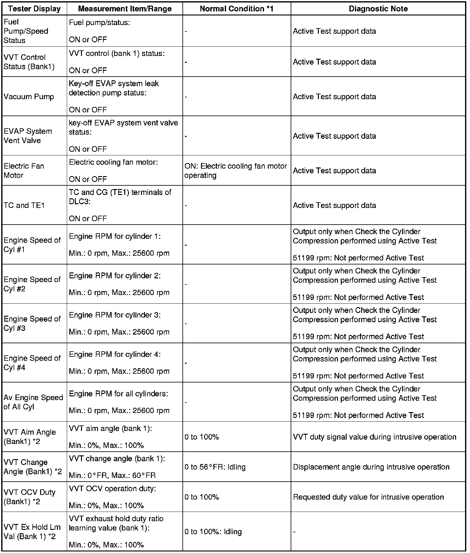 - *2: Values are only displayed when performing the Active Tests: Control the VVT Linear (Bank1). For other Active Tests, the value will be 0.