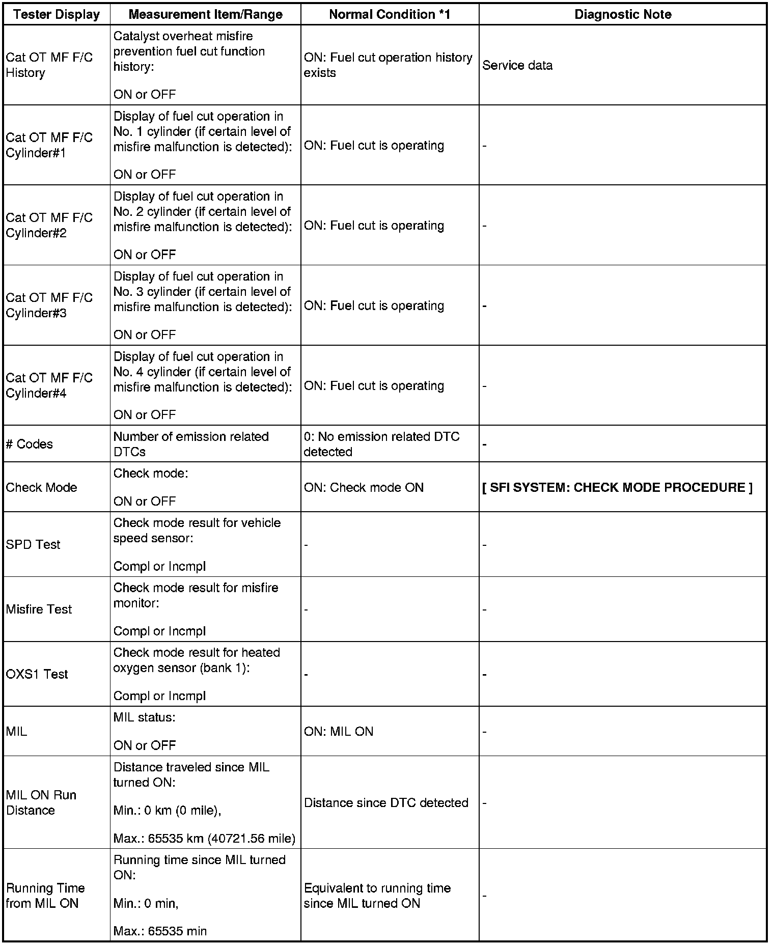 NOTE: *1: If the display of the Data List's Catalyst OT MF F/C item is Not Avl, perform this Active Test with the vehicle stopped and the engine idling. If the display of the Data List's Catalyst OT MF F/C item is Avail, perform this Active Test as described below.