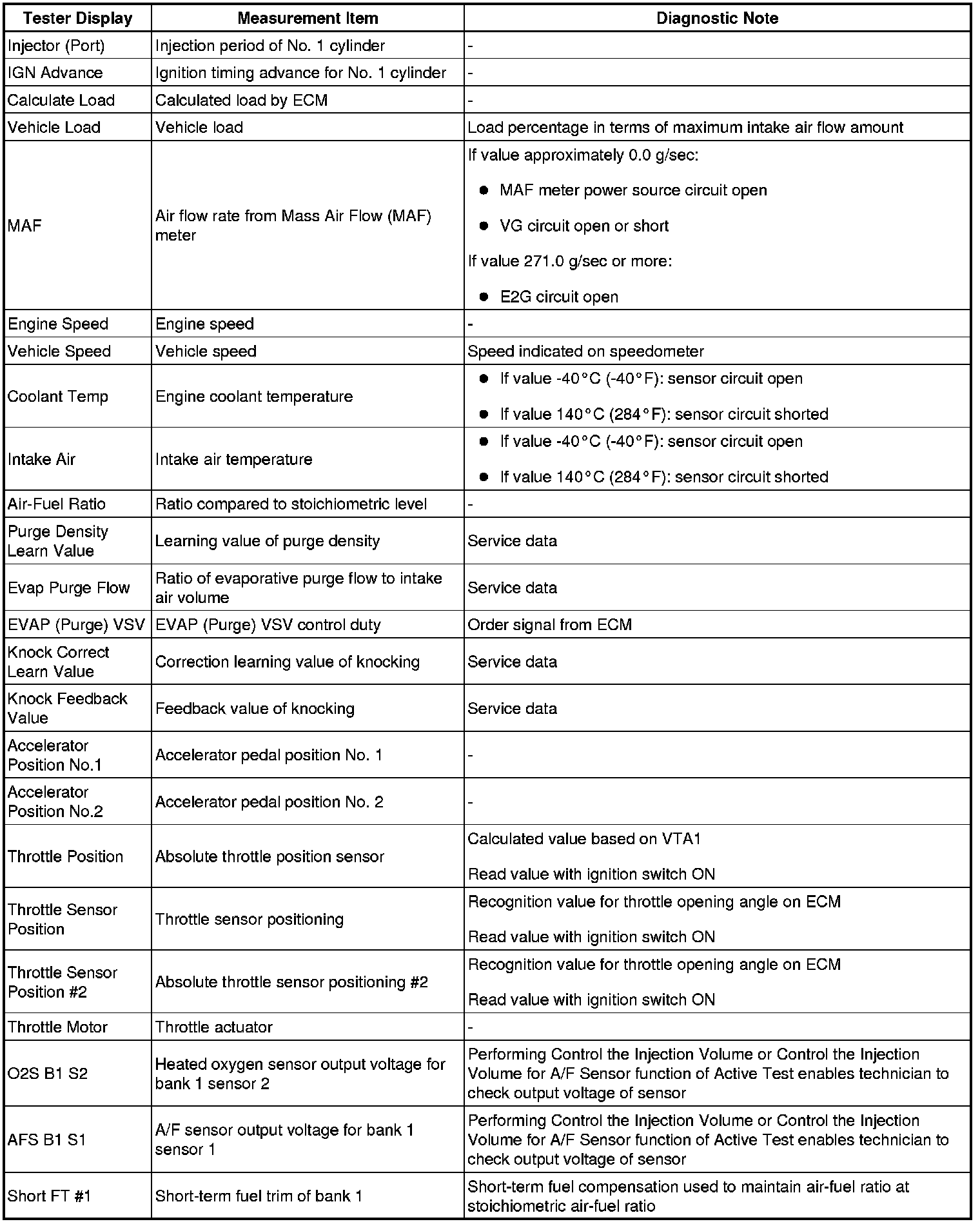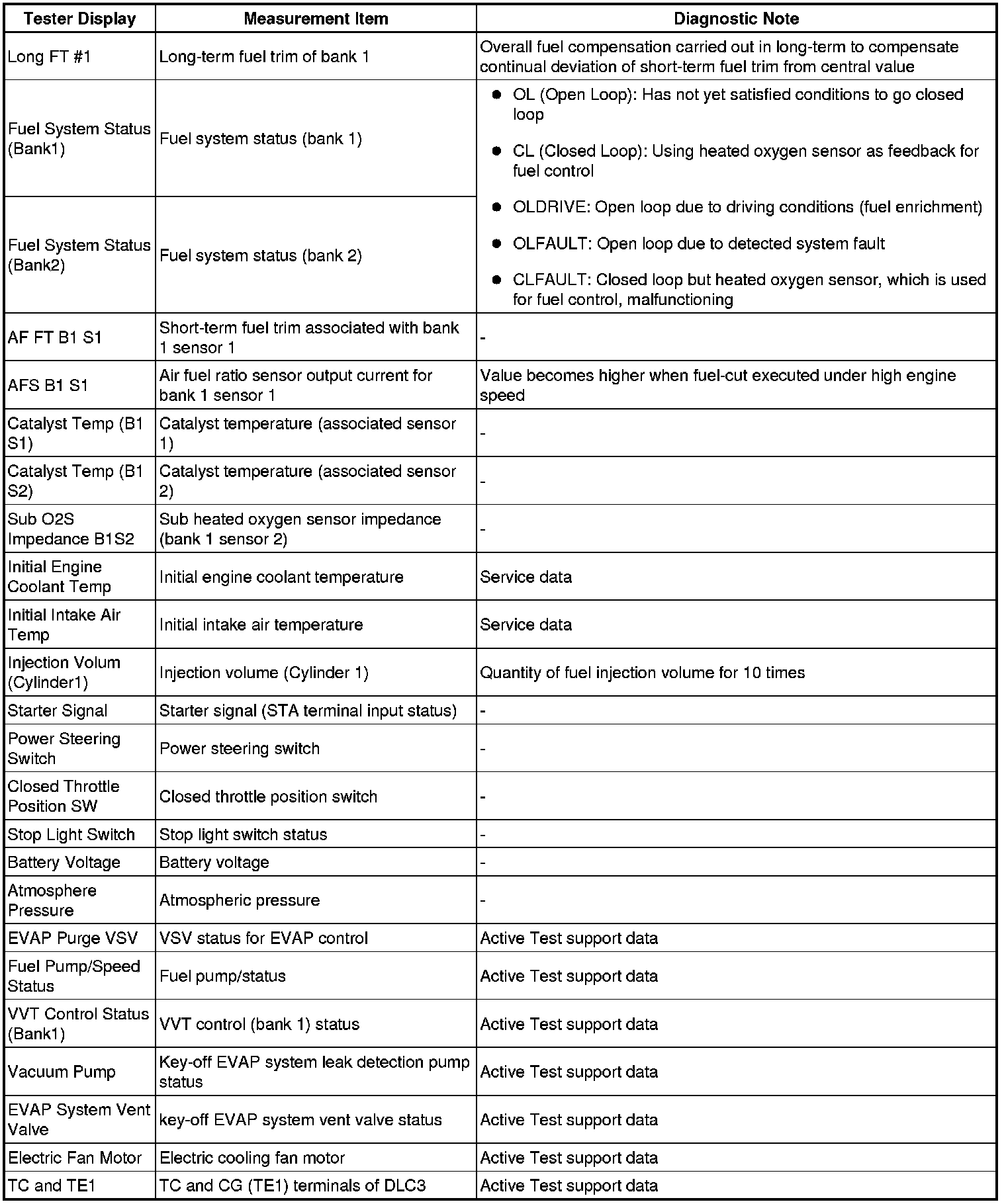 2ZR-FE ENGINE CONTROL SYSTEM: SFI SYSTEM: FREEZE FRAME DATA