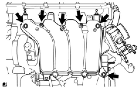 (b) Install the intake manifold and intake manifold stay with the 4 bolts and 2 nuts.