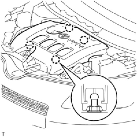 (a) Engage the 4 fittings shown and install the No. 2 cylinder head cover by applying pressure to it.