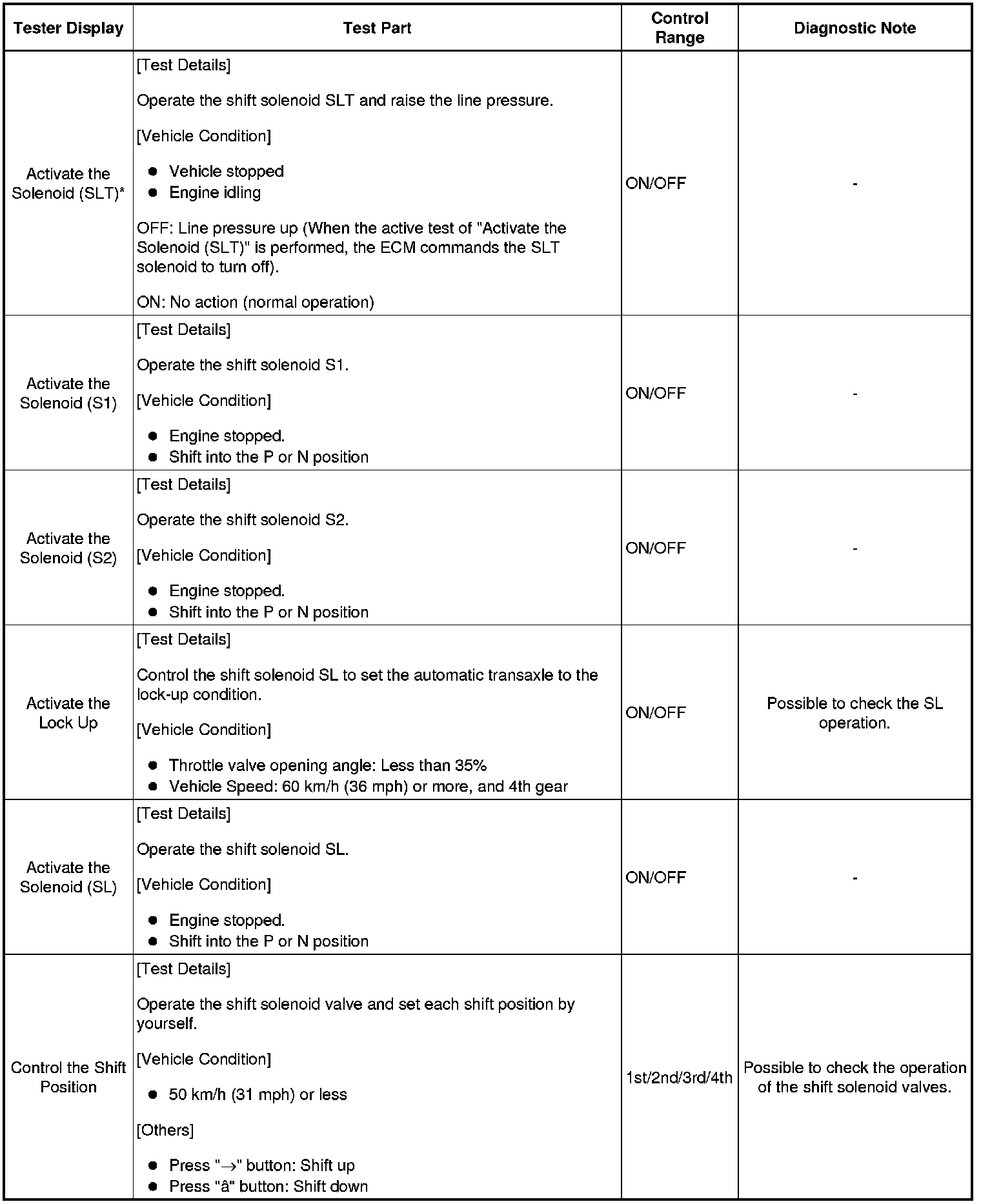 *: Activate the Solenoid (SLT) in the Active Test is performed to check the line pressure changes by connecting the SST to the automatic transaxle, which is used in the HYDRAULIC TEST Hydraulic Test as well.