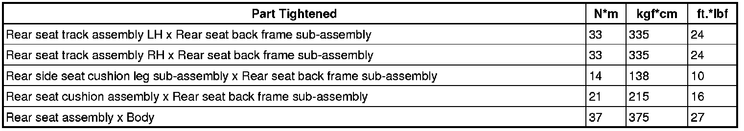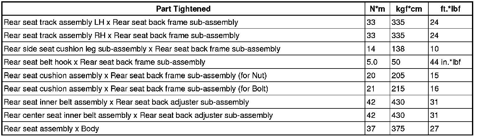SERVICE SPECIFICATIONS: SEAT: TORQUE SPECIFICATIONS