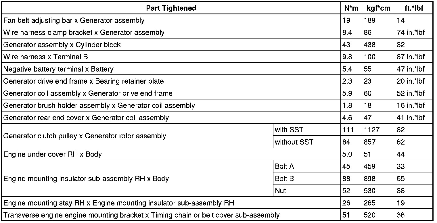 SERVICE SPECIFICATIONS: 2ZR-FE CHARGING: TORQUE SPECIFICATIONS
