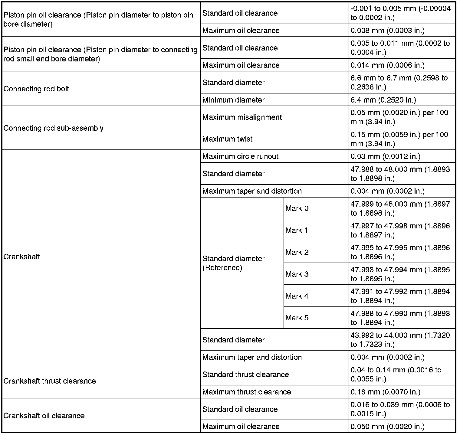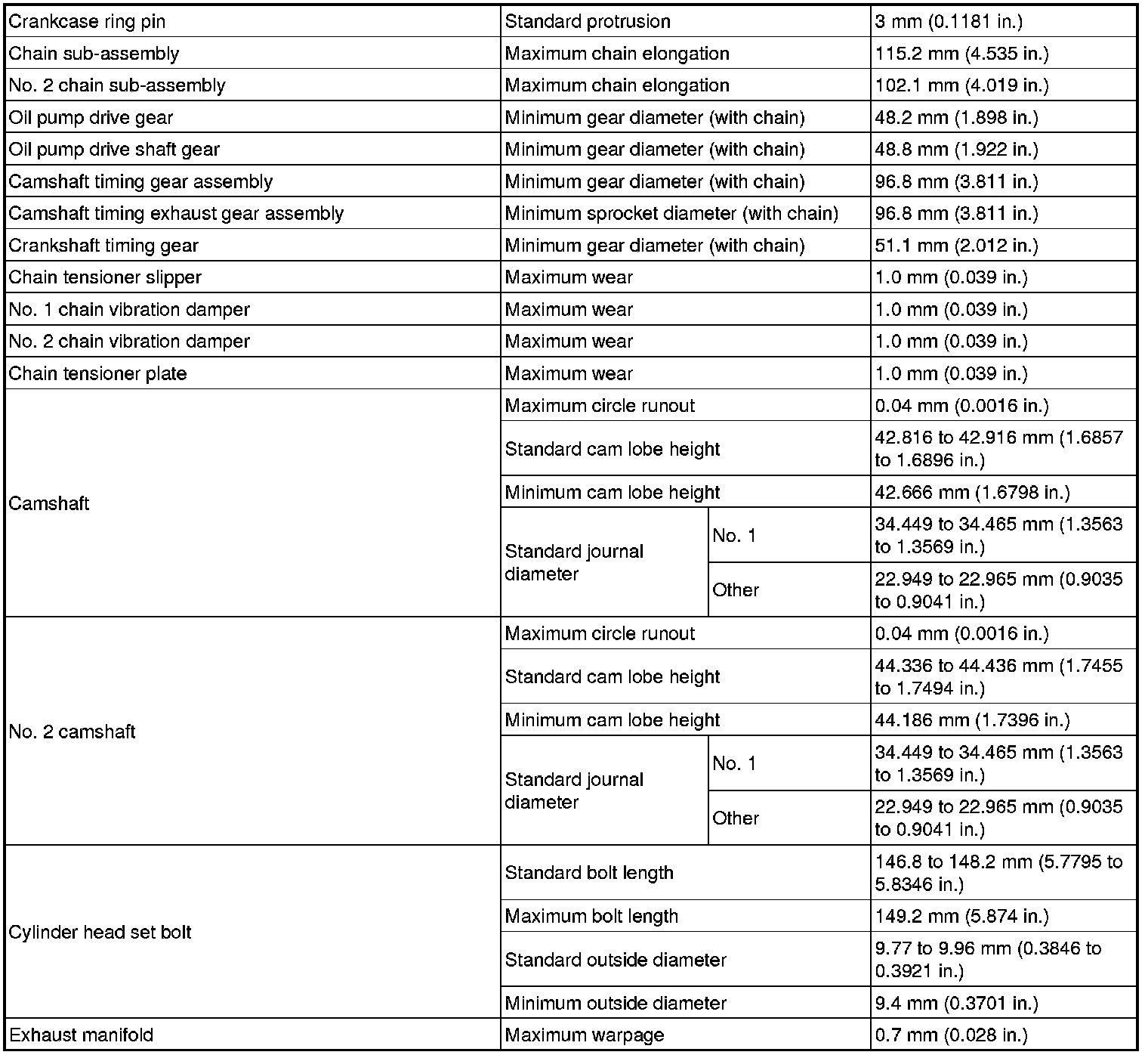 SERVICE SPECIFICATIONS: 2ZR-FE ENGINE MECHANICAL: SERVICE DATA