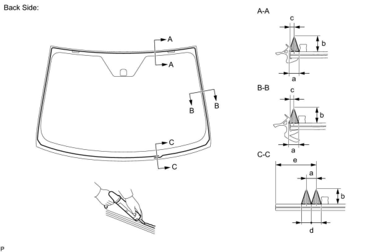 (b) Install a new adhesive dam onto the windshield glass, as shown in the illustration.