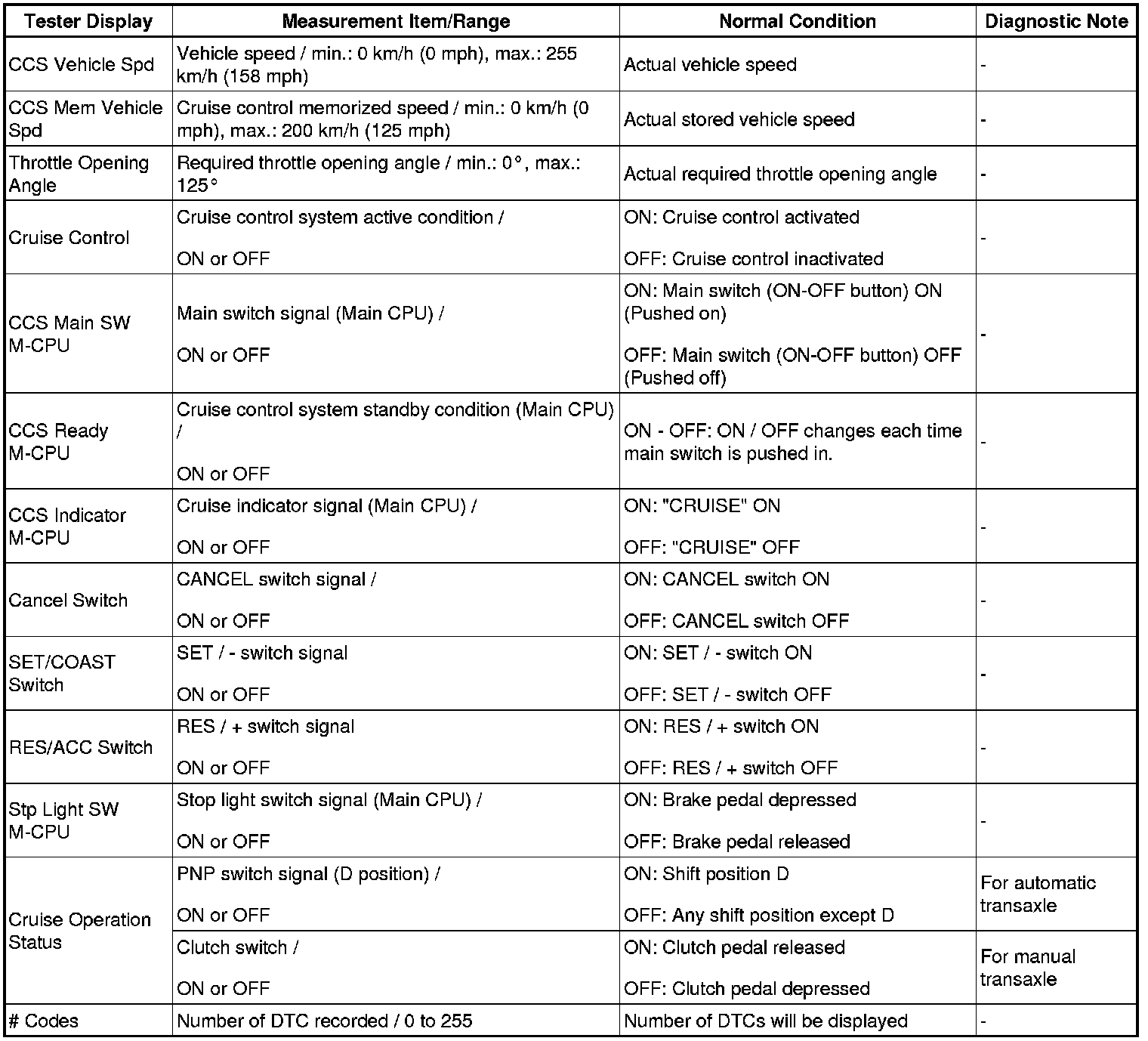 CRUISE CONTROL: CRUISE CONTROL SYSTEM: DATA LIST / ACTIVE TEST