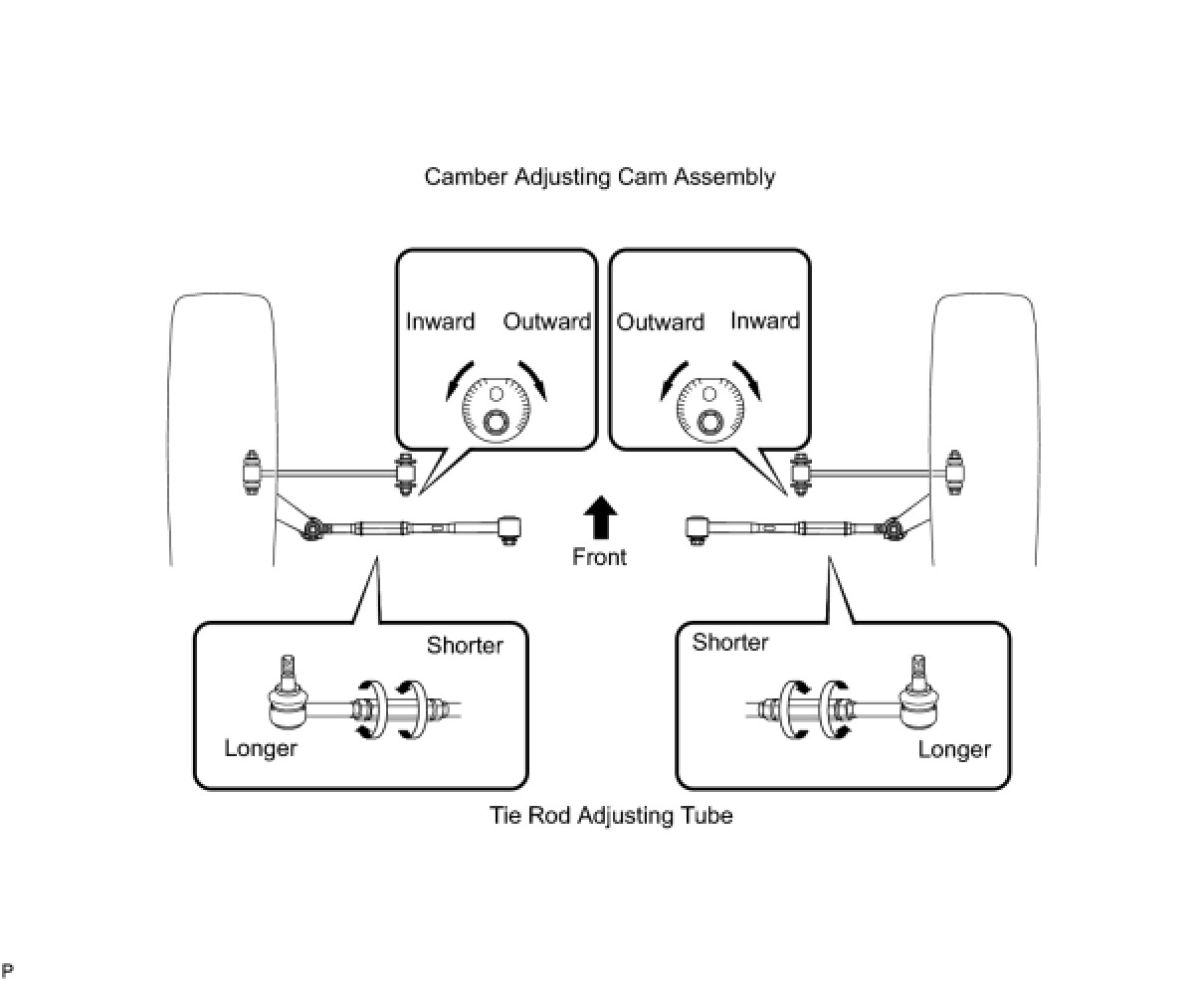 (e) Adjust the camber and toe-in by turning the adjust cam and adjusting tube.