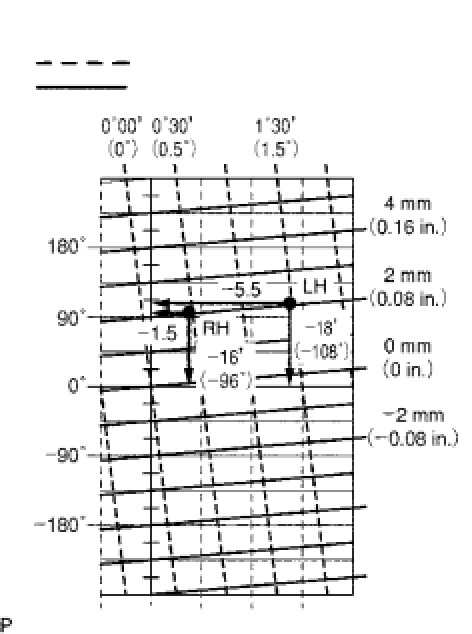 (3) As shown in the example chart, read the distance from the marked point to the center of the chart, and adjust the upper and/or lower arm adjusting cams accordingly.
