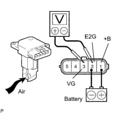 (3) Blow air into the mass air flow meter, and then check that the voltage fluctuates.