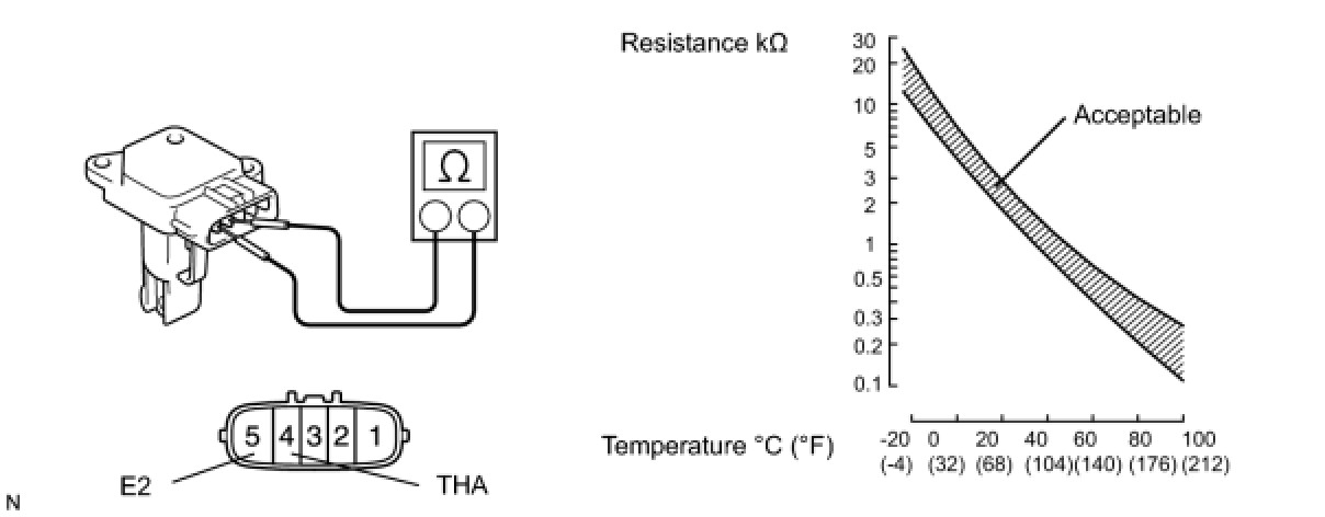 (1) Using an ohmmeter, measure the resistance between the terminals 4 (THA) and 5 (E2).