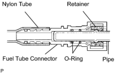 (b) Pinch the retainer as illustrated, and then pull the fuel tube connector out of the pipe.