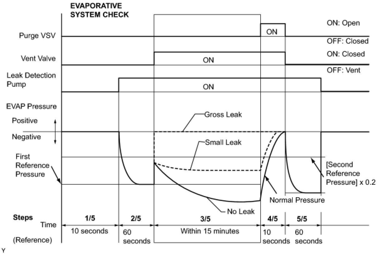 (b) Compare the EVAP pressure in step 3/5 and the second reference pressure (step 5/5).