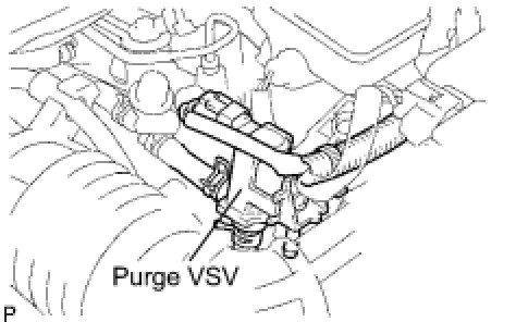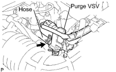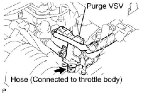 (a) Disconnect the hose (connected to the intake manifold) from the purge VSV.
