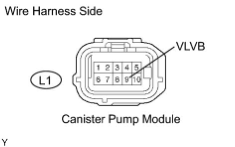 (d) Measure the voltage between the VLVB terminal of the canister pump module connector and body ground.