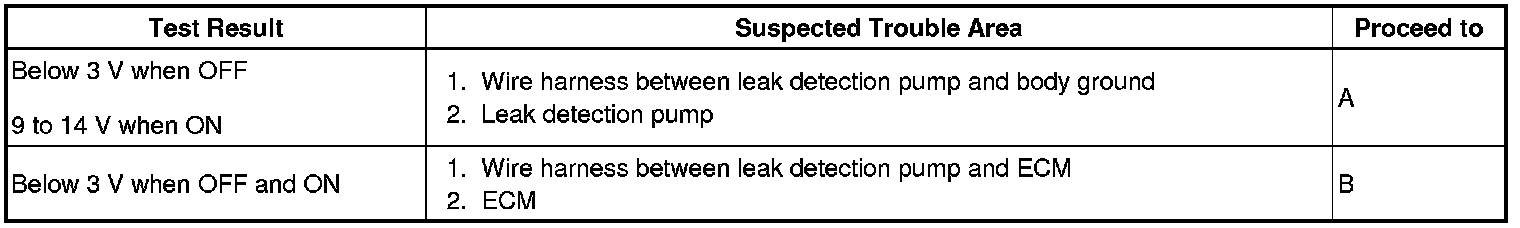 If any EVAP system DTCs are set, the malfunctioning area can be determined using the table below.